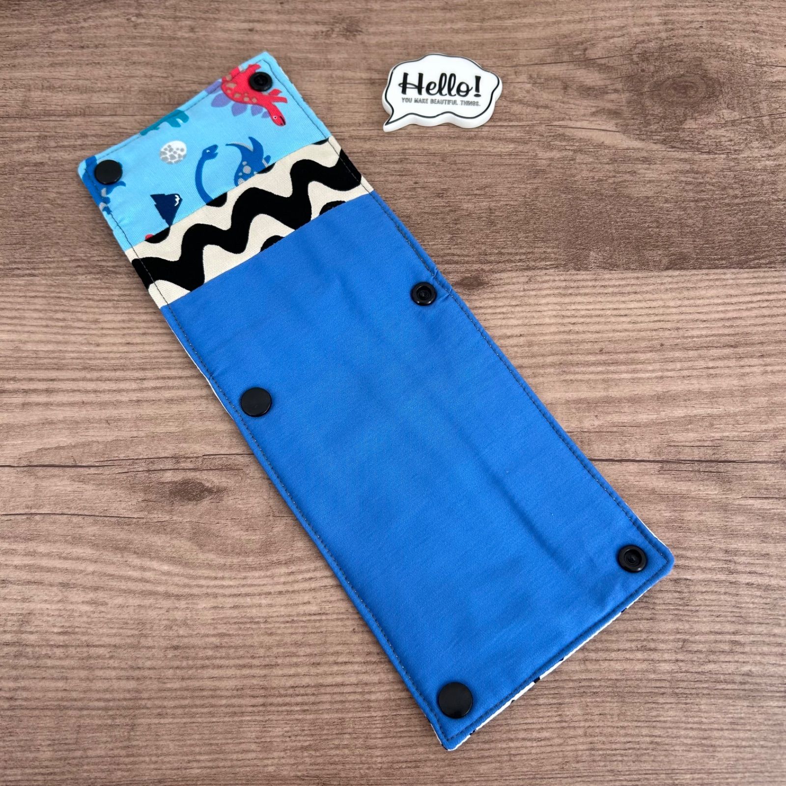 中にはキルト芯を入れて作りましたのでふわふわです!スナップボタンで開閉します。