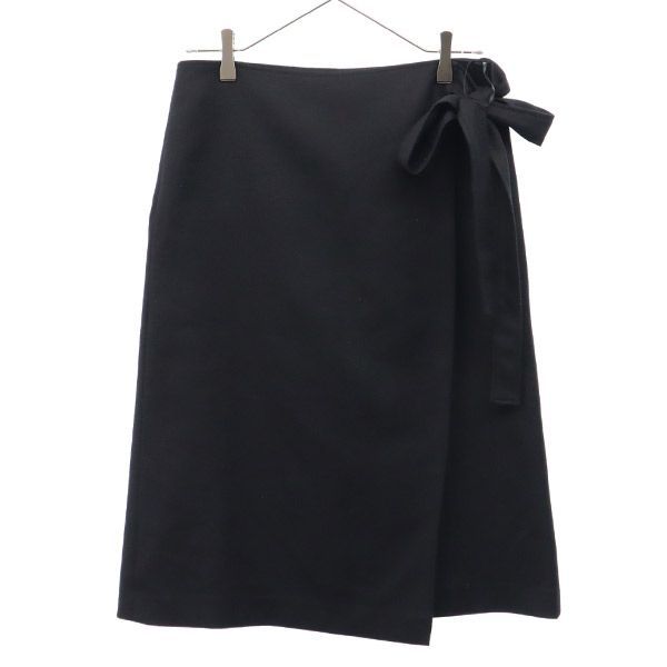 theory セオリー 日本製 ウールブレンド ミディ丈 ラップスカート 2 ブラック レディース 古着