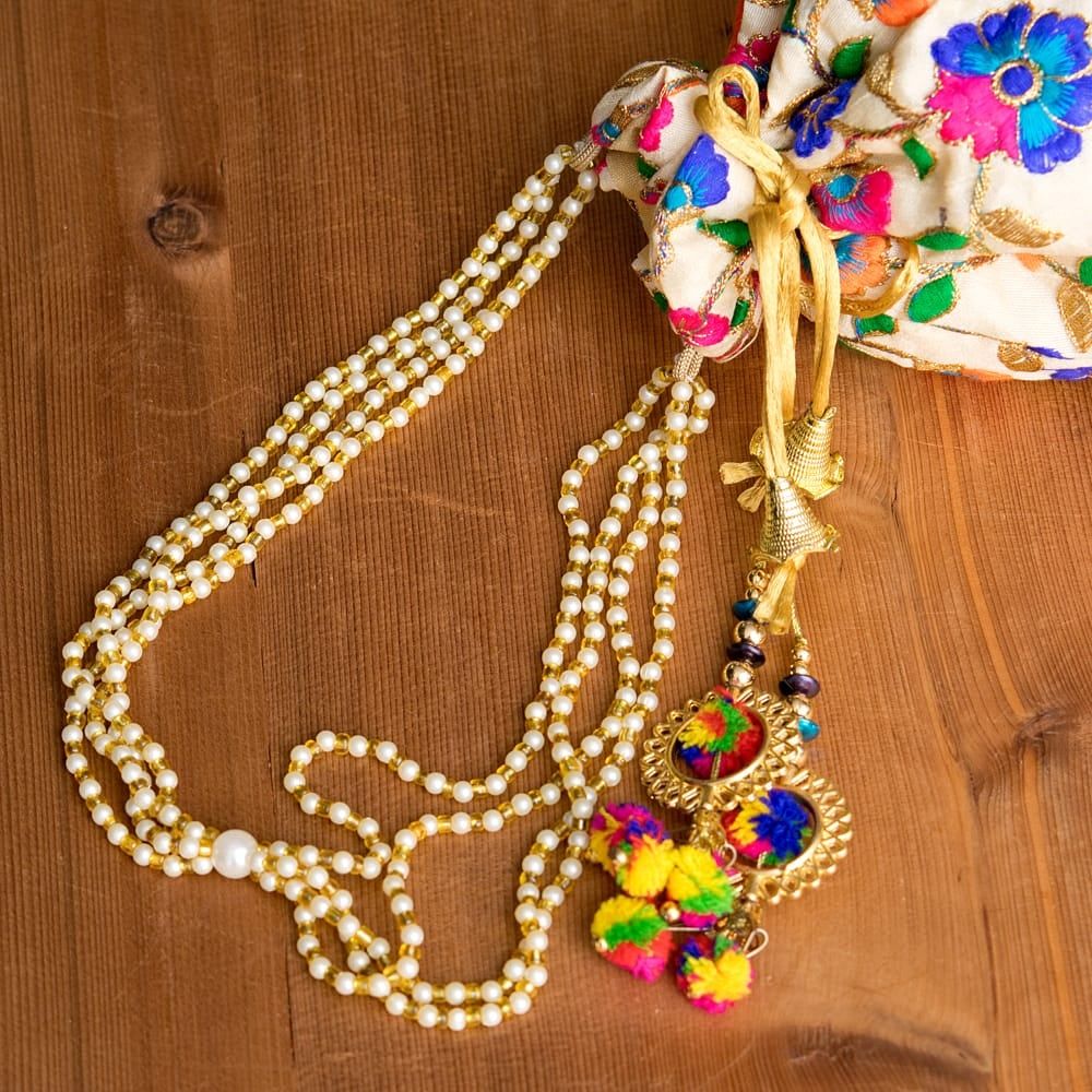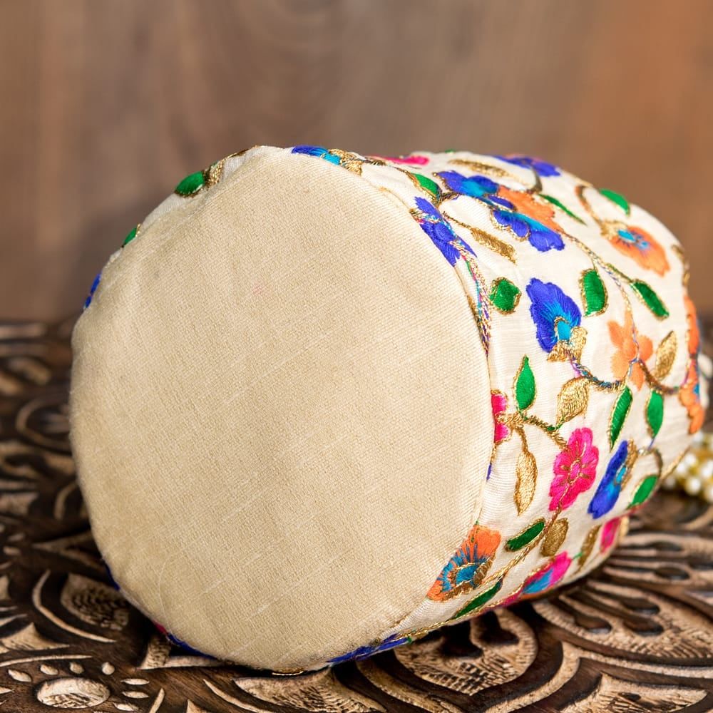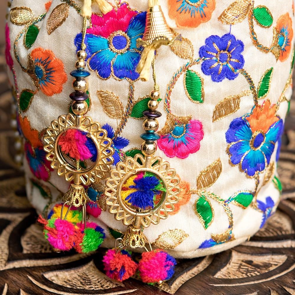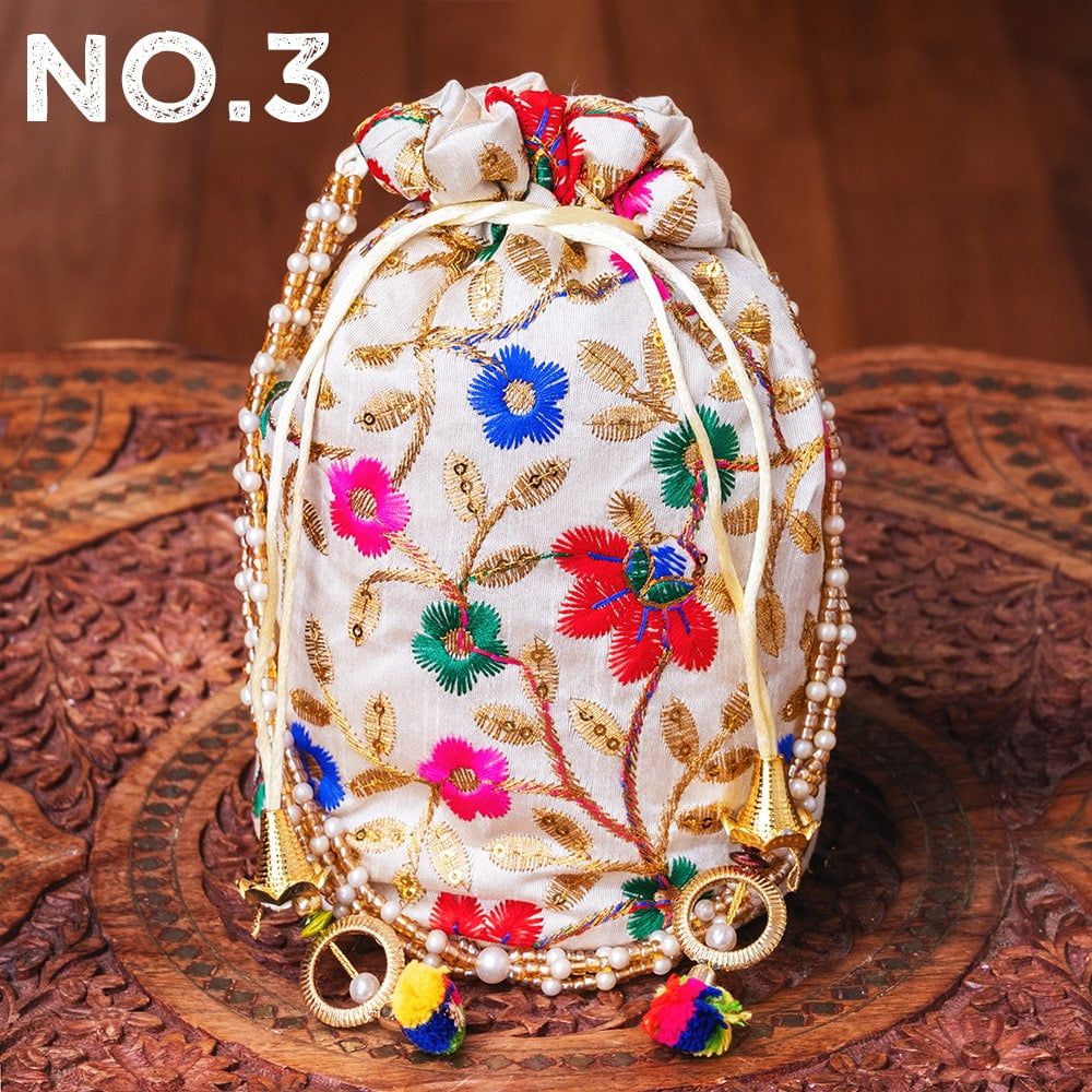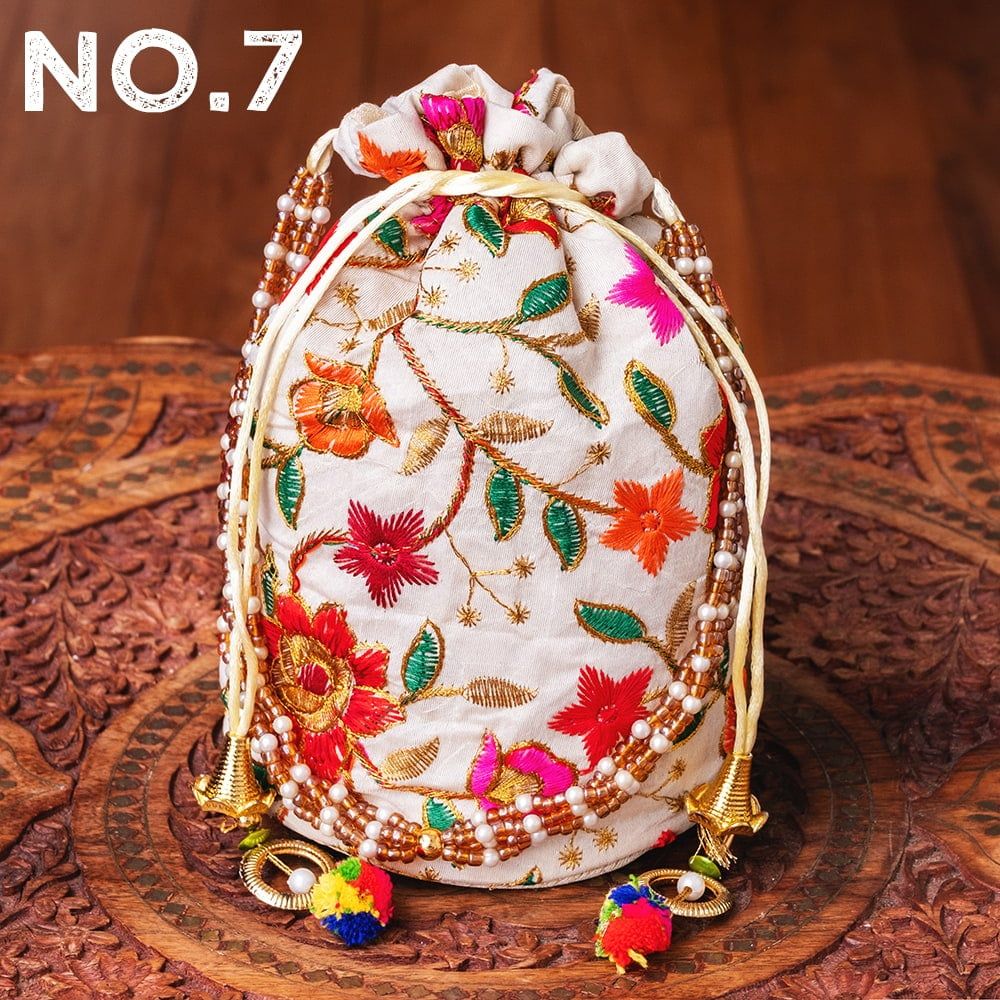 インドのきらきらミニバッグ・サリー等へオススメの巾着 フラワー更紗刺繍系 / ポトリバッグ ハンドバッグ インド バッグ