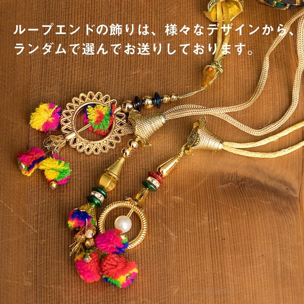 【備考】ループエンドの飾りは色々なデザインが混ざっている為、写真とは異なる場合がございます。こちらの商品はインド製品ですべて手作りで作っている為、どうしてもほつれやヨレ、糊の跡が付いている場合がございます。記載サイズは平均的な目安となり、個体差がございます。また、刺繍部分にほつれが見られることもございます。ご理解の上、お買い求め頂けますようお願い致します。