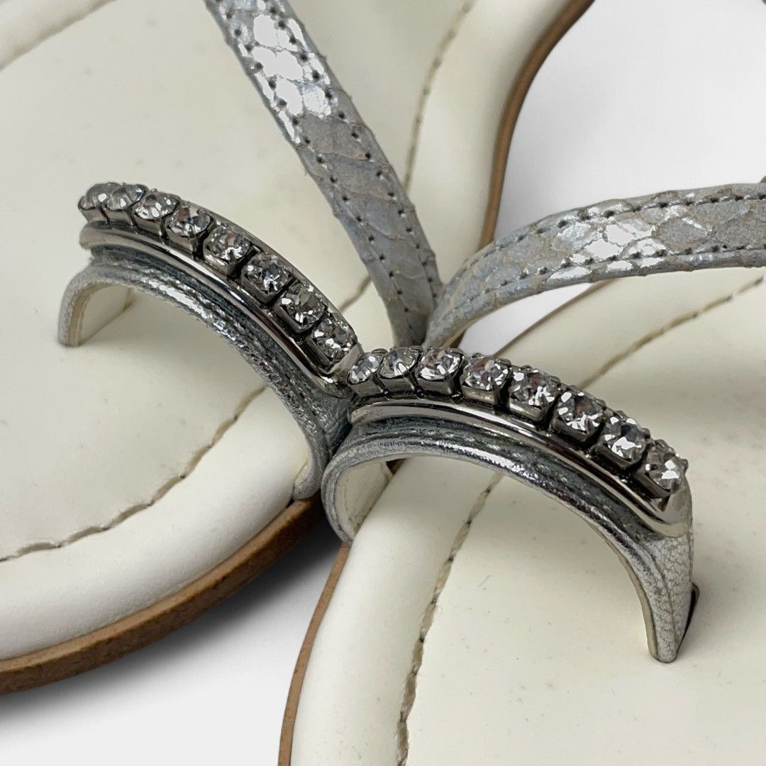 ダイアナ トングサンダル ホワイト スワロフスキー スタッズ ビジュー
