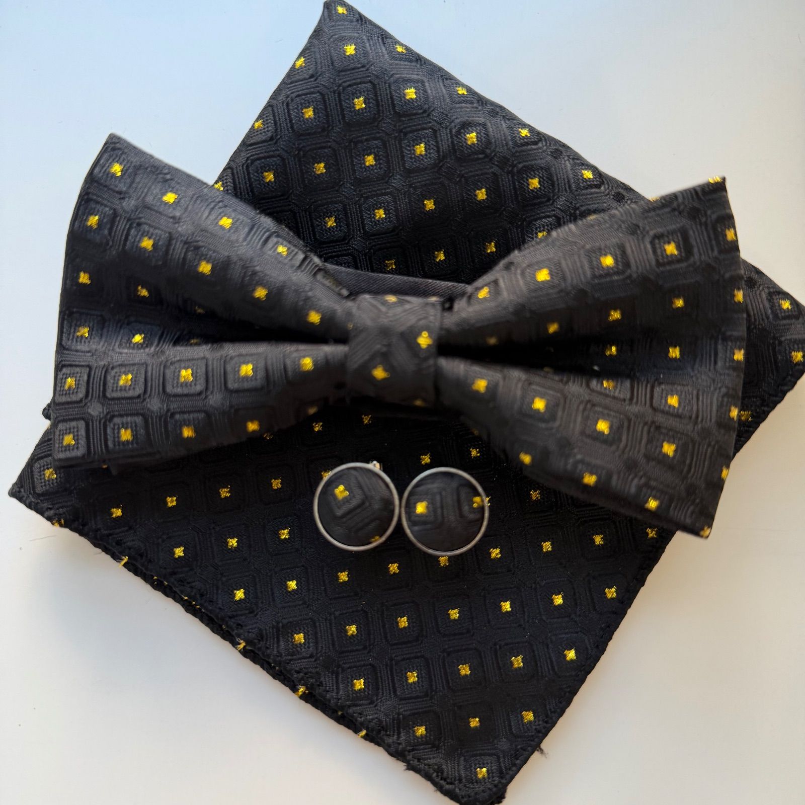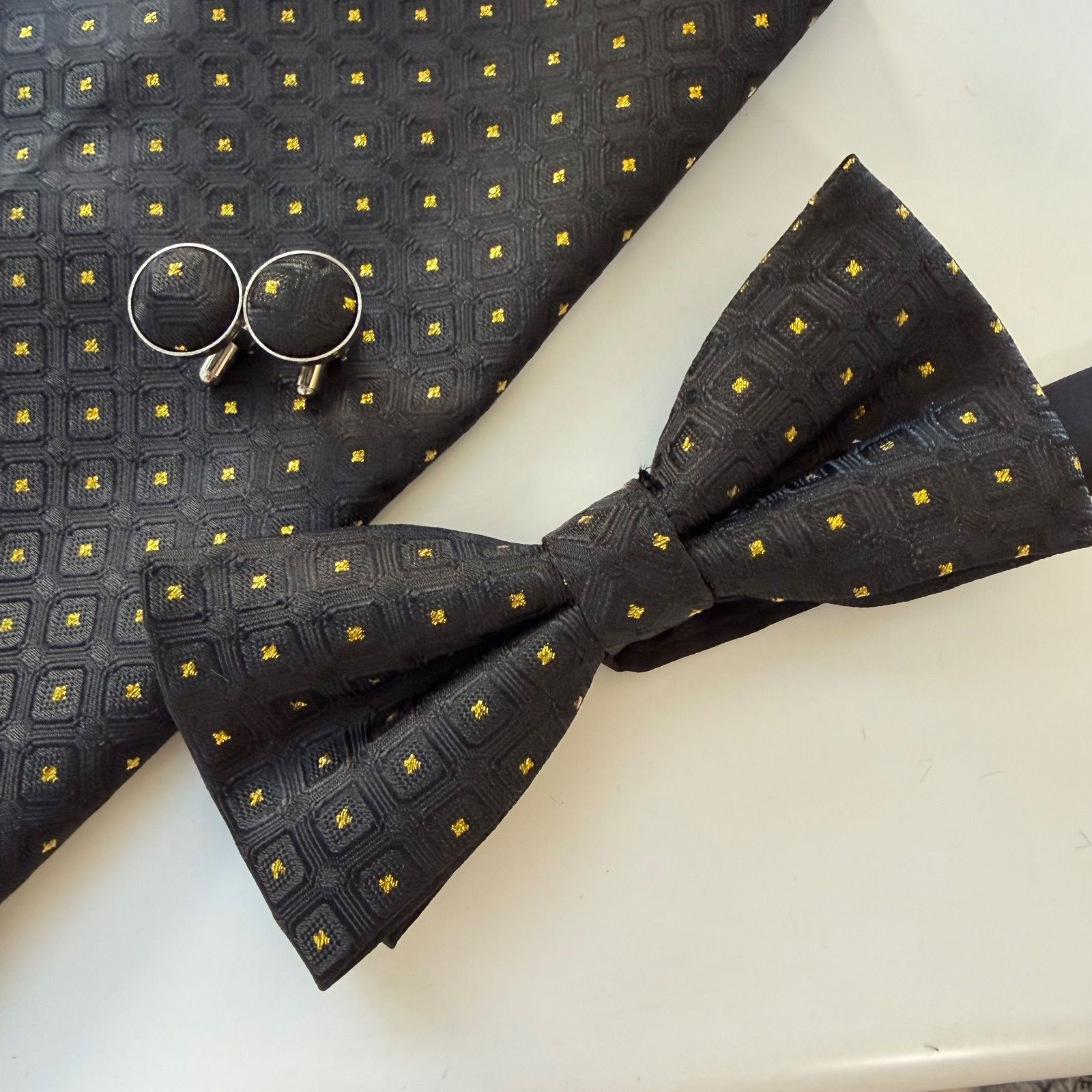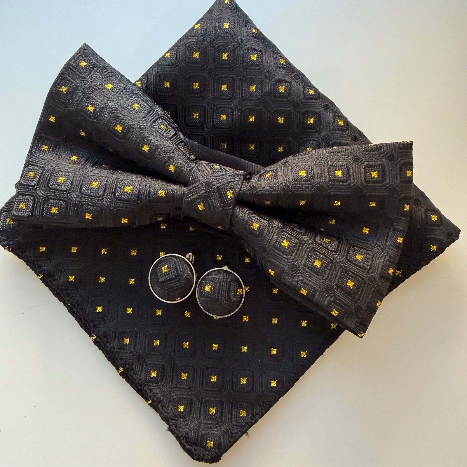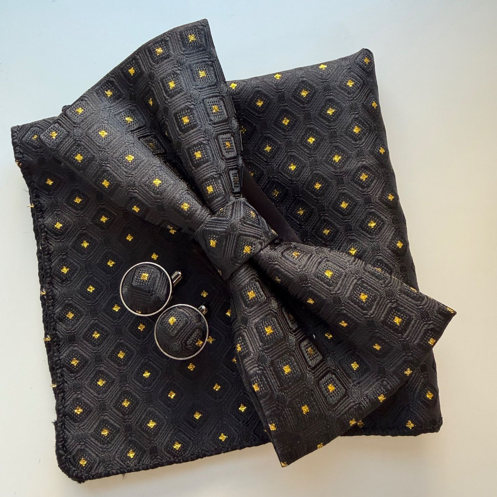 🌟蝶ネクタイとポケットチーフ、カフス3点セット