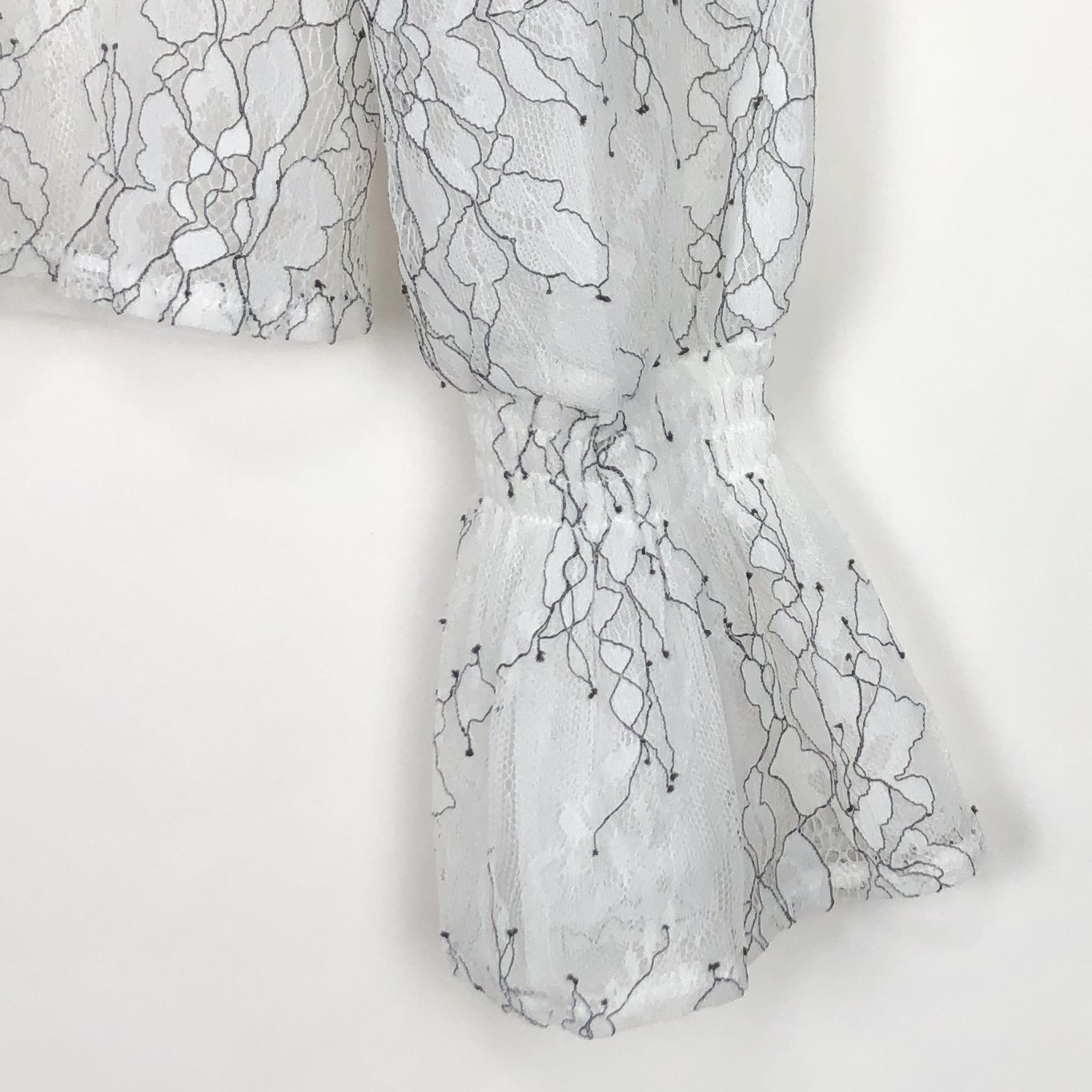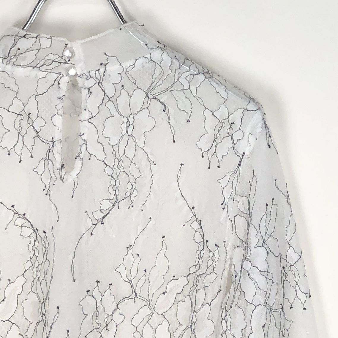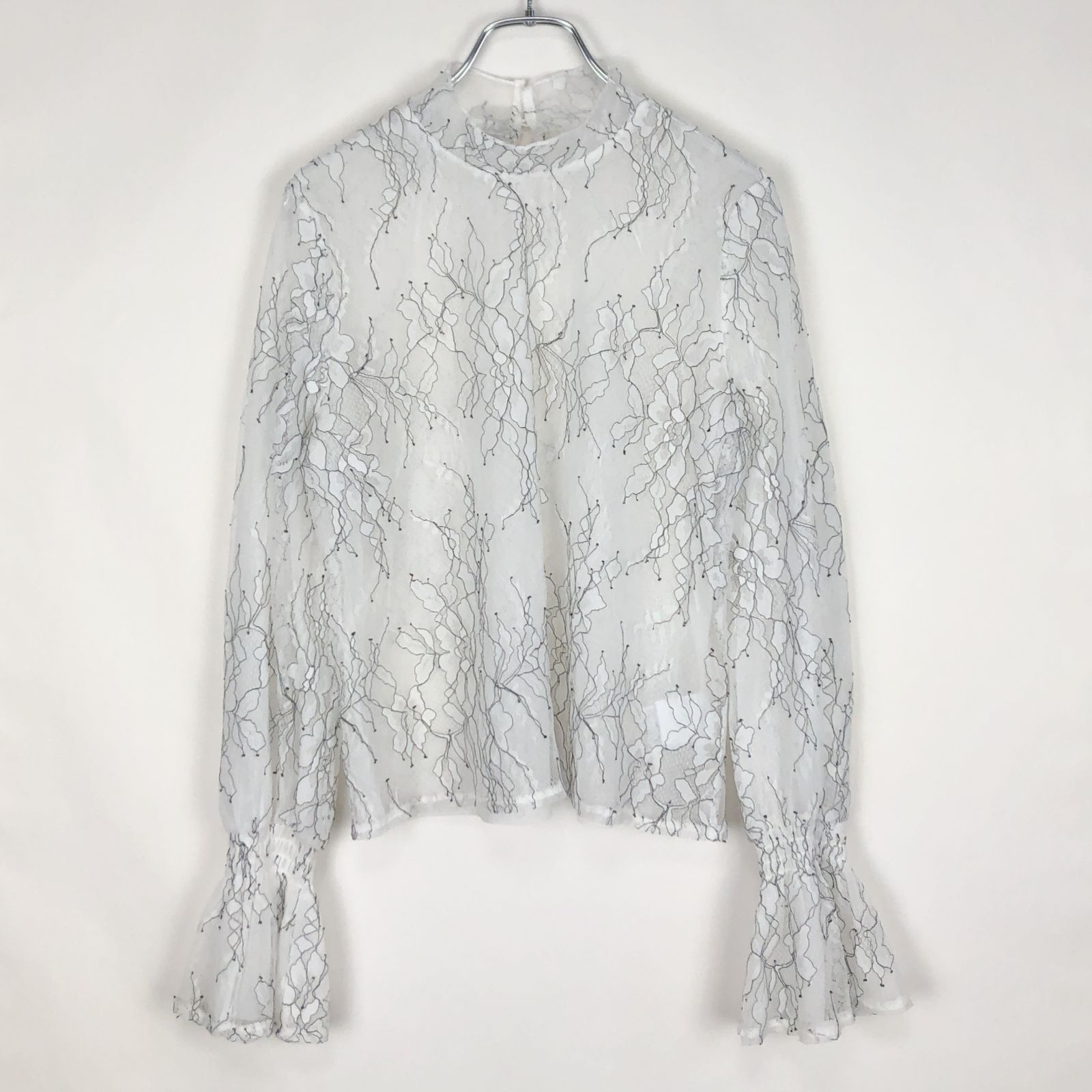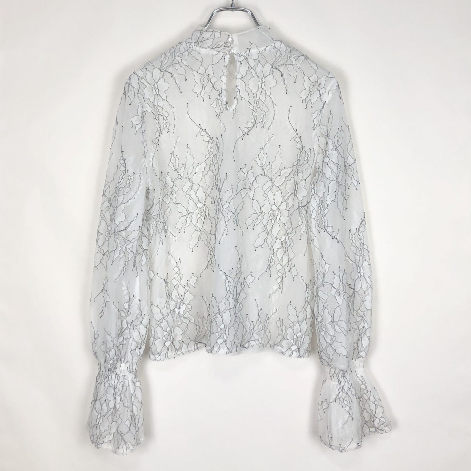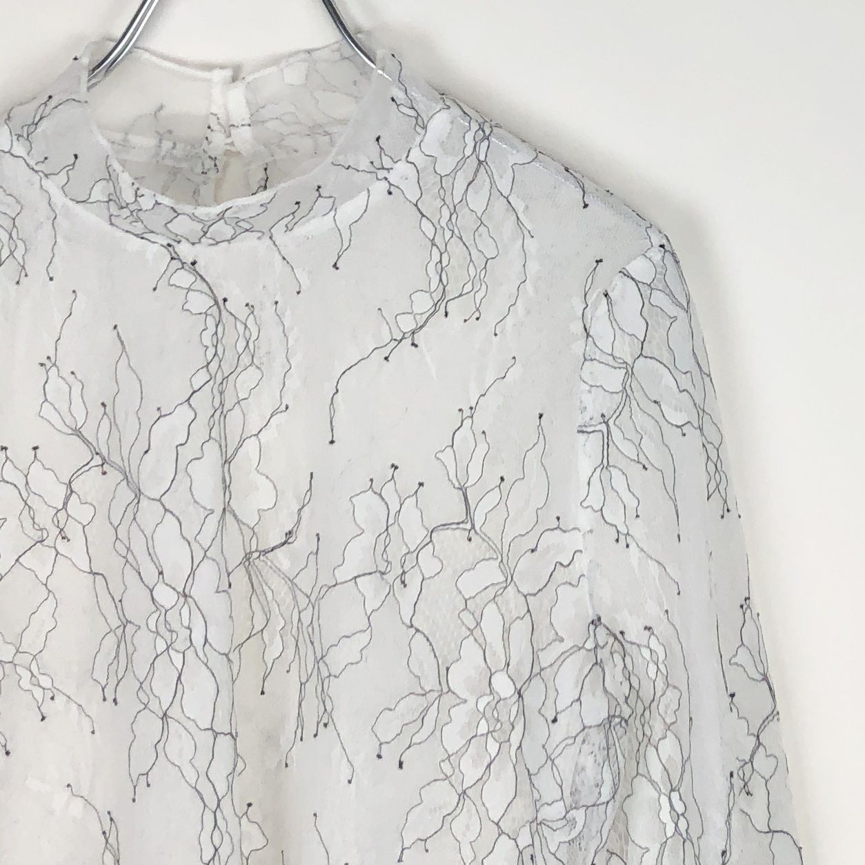 リリアンカラット フリル スタンドカラー 花柄レースブラウス