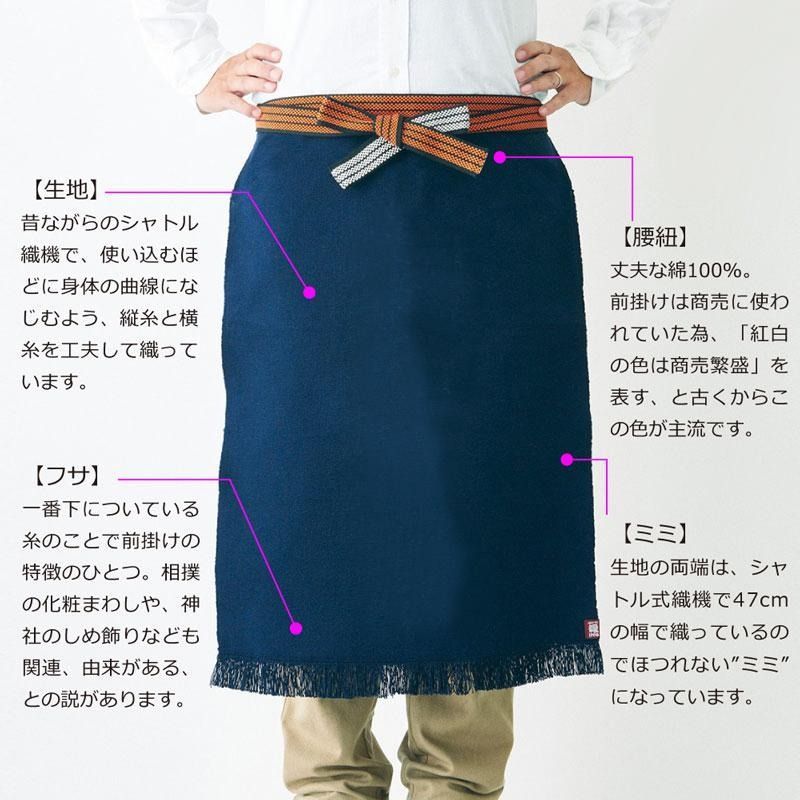 生地も腰紐(帯)は、綿100%なので大変丈夫で、適度に伸縮性のある紅白の紐は、昔から使われている「商売繁盛」の意味が込められたおめでたい色。