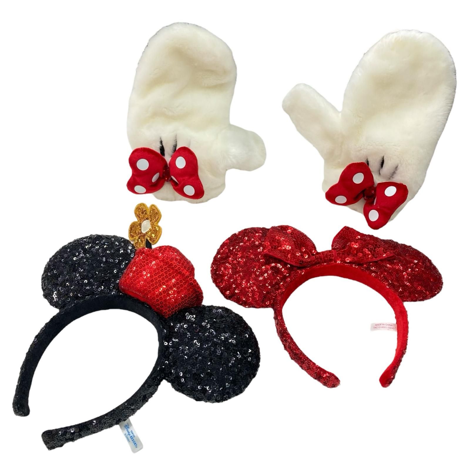186000 現状品 Disney ディズニー 3点 ミニー ミトン手袋 まとめ売り カチューシャ 美品 冬 スパンコール