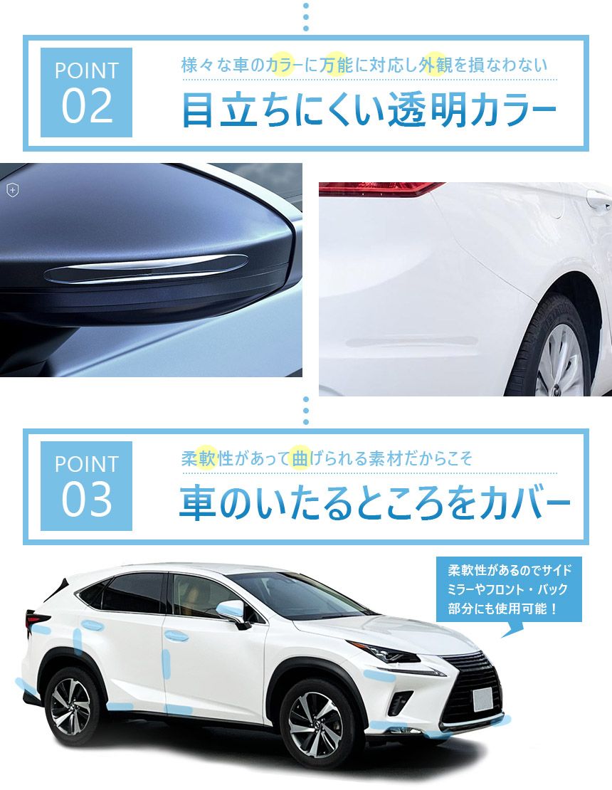 ドアの縁などにこの製品をつけておくと、ドアを開けた際に万が一ぶつかってしまった際にも衝撃を吸収し車が傷つくのを防ぐことができます。
