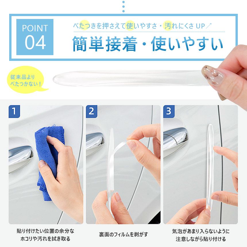 ドア以外にもサイドミラーやフロント/バックなどのカーブがかった場所にもつけることができます。