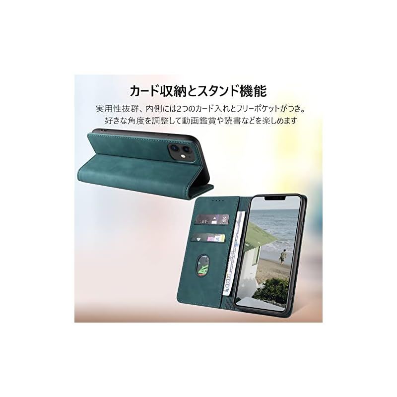 ★【カード収納とスタンド機能】アイフォン11 カバー動画視聴に便利なスタンド機能が付き、横向いて斜めに立てて、お好きな角度を調整でき、両手が解放され、お気軽に読書やビデオの観賞を楽しむことができます。内側には2つのカード入れとフリーポケットがつき、名刺や定期券の収納に優れているアイフォン 11 ケース 手帳 型です。