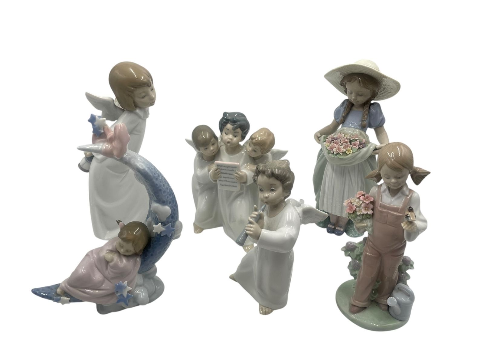 ■リヤドロ LLADRÓ 可愛いお祈り/お月様の夢/天使のコーラス/小鳥と話す少女/たくさん摘めたよ/可愛いフルート 陶器 置物