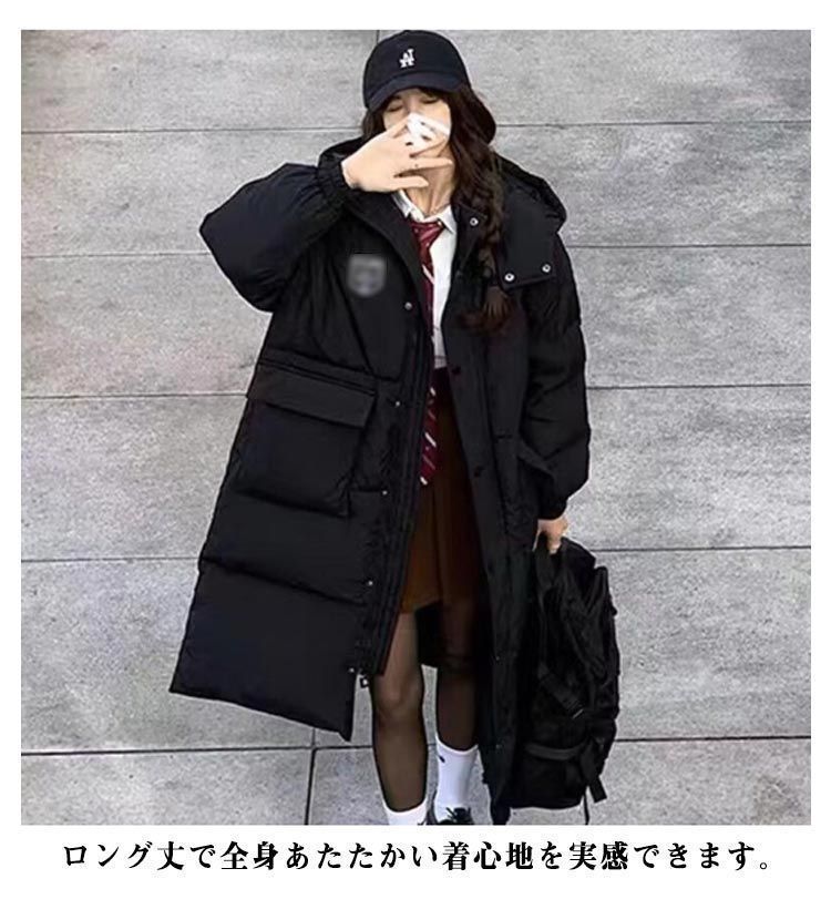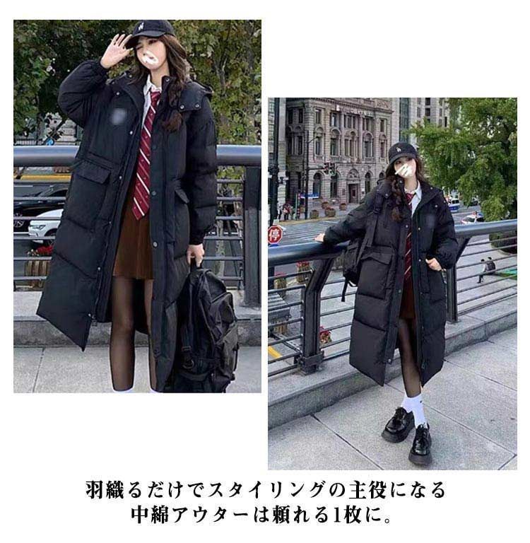 保温 中学生 ベンチコート 通学 中綿 ロング レディース 防風 中綿ジャケット 女の子 韓国 女子高生 フード付き ジュニア 中綿コート コート ロングコート jk制服 アウター 高校生 黒 ダウ#cjfj137613