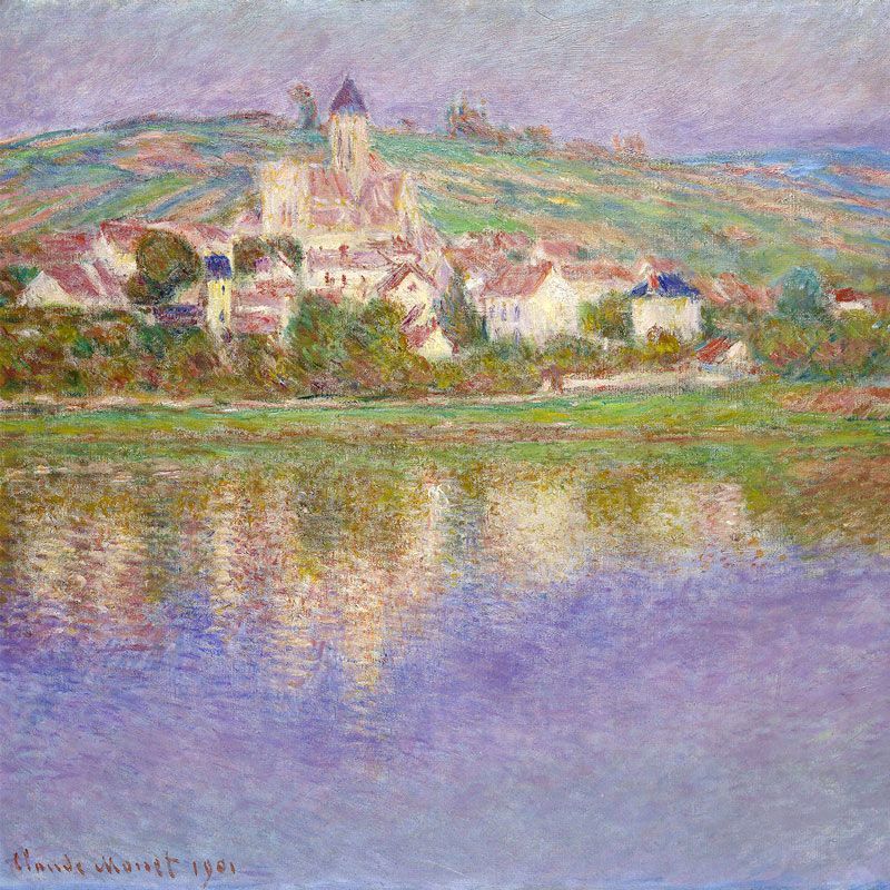 クロード・モネの印象派風景画、『ヴェトゥイユ』は、ヴェトゥイユの村と川の水面に映る自然の光を捉えた、おしゃれなアート絵画です。この癒やしの名画は、インテリアとしてリビング、寝室、玄関など部屋の飾り方でモダンなコーディネートに上質な雰囲気と人気を添え、フランスの美しい自然を自宅で感じさせてくれます。