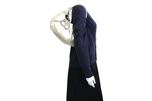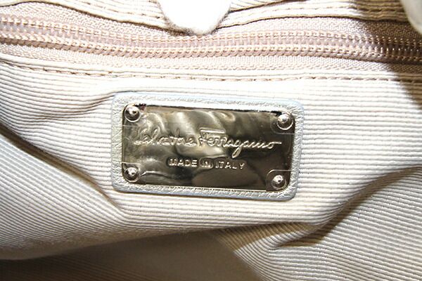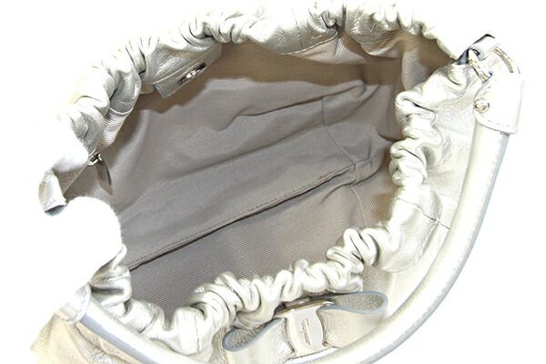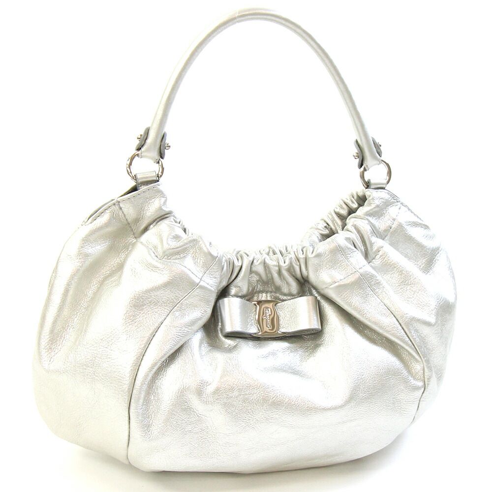 フェラガモワンショルダーバッグヴァラ21C786シルバーレザー中古リボンハンドバッグセミショルダー肩掛けロゴレディース女性SalvatoreFerragamo