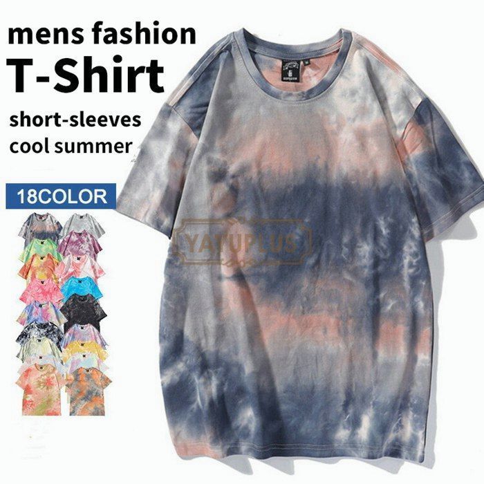 タイダイTシャツ メンズ Tシャツ 染め tシャツ ティーシャツ 夏服 半袖 カットソー トップス クルーネック Tシャツ メンズ 半袖 M L LL 全18種 新作 春 夏 服\u0001