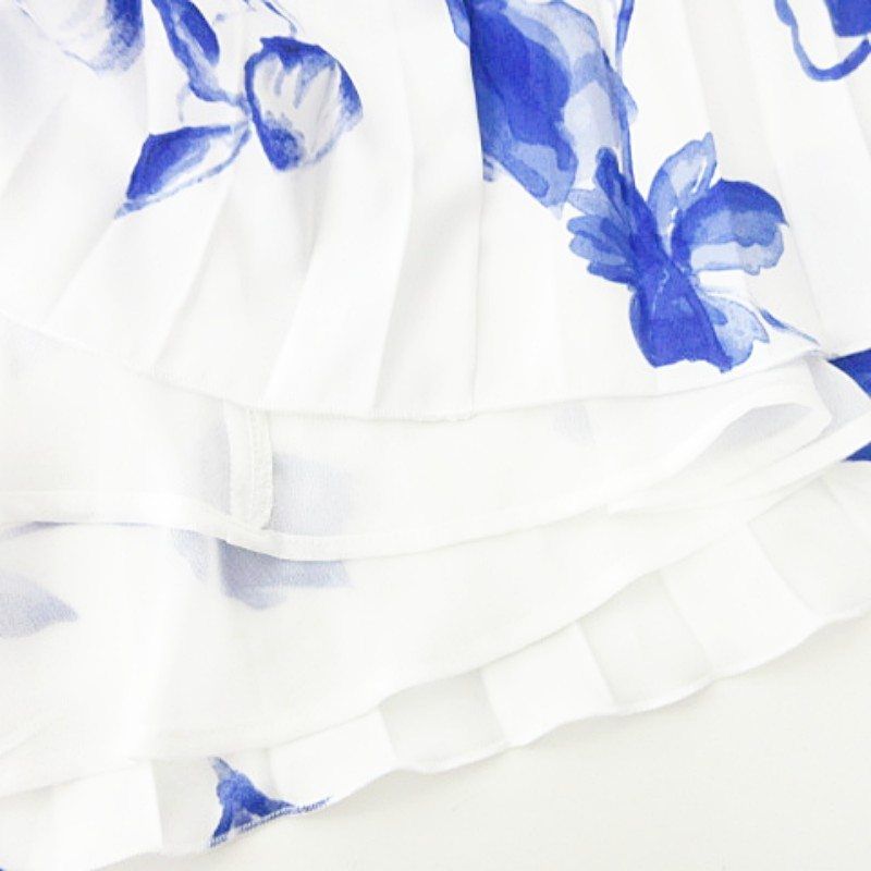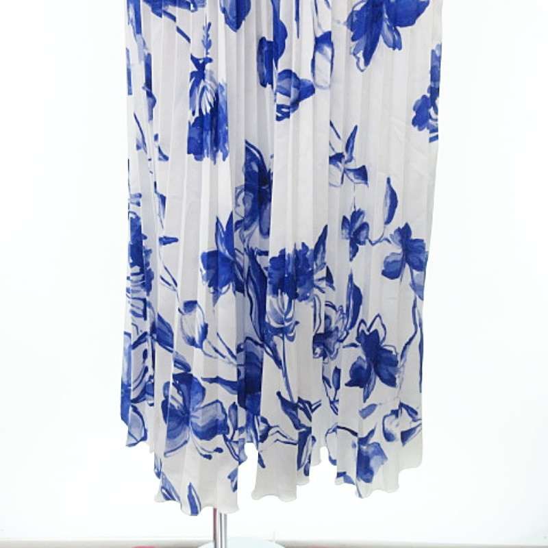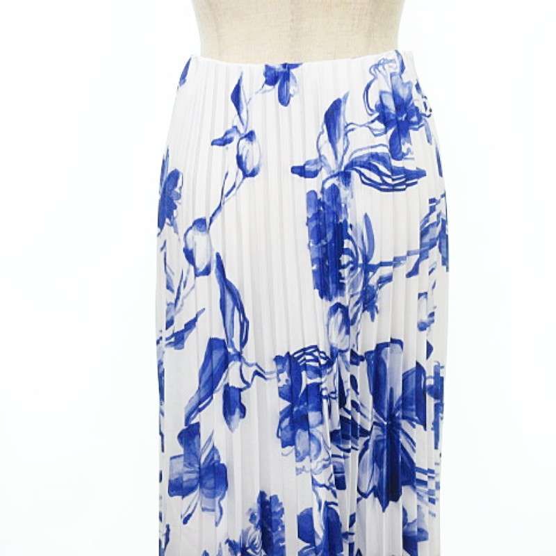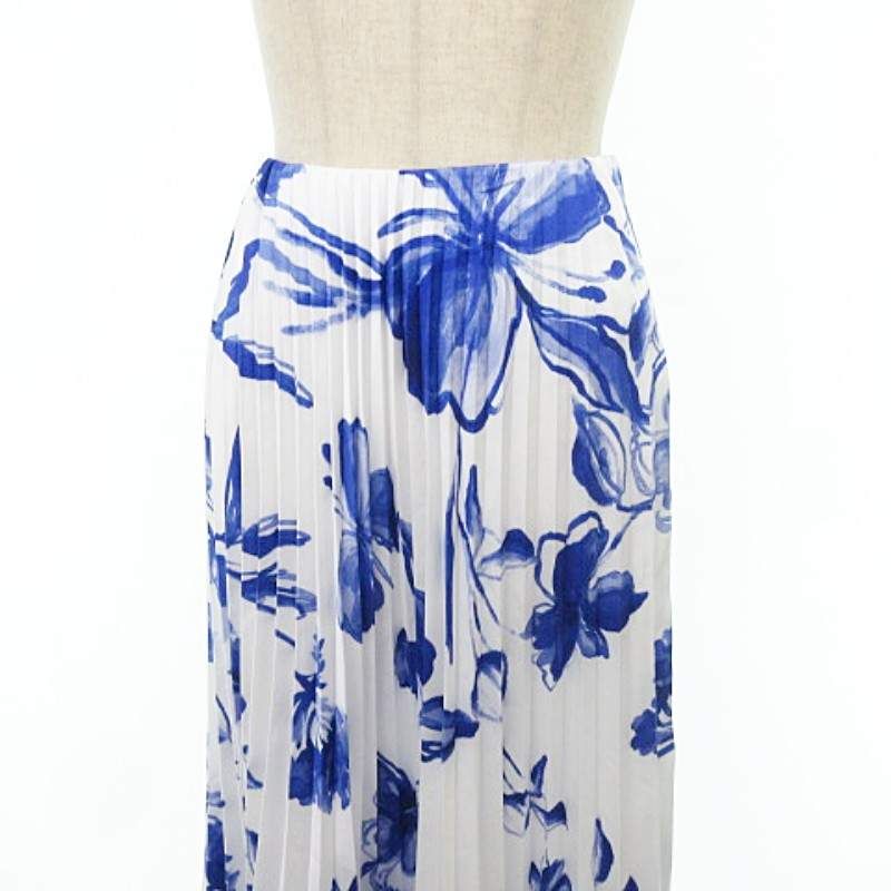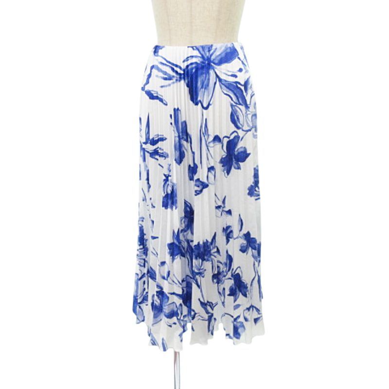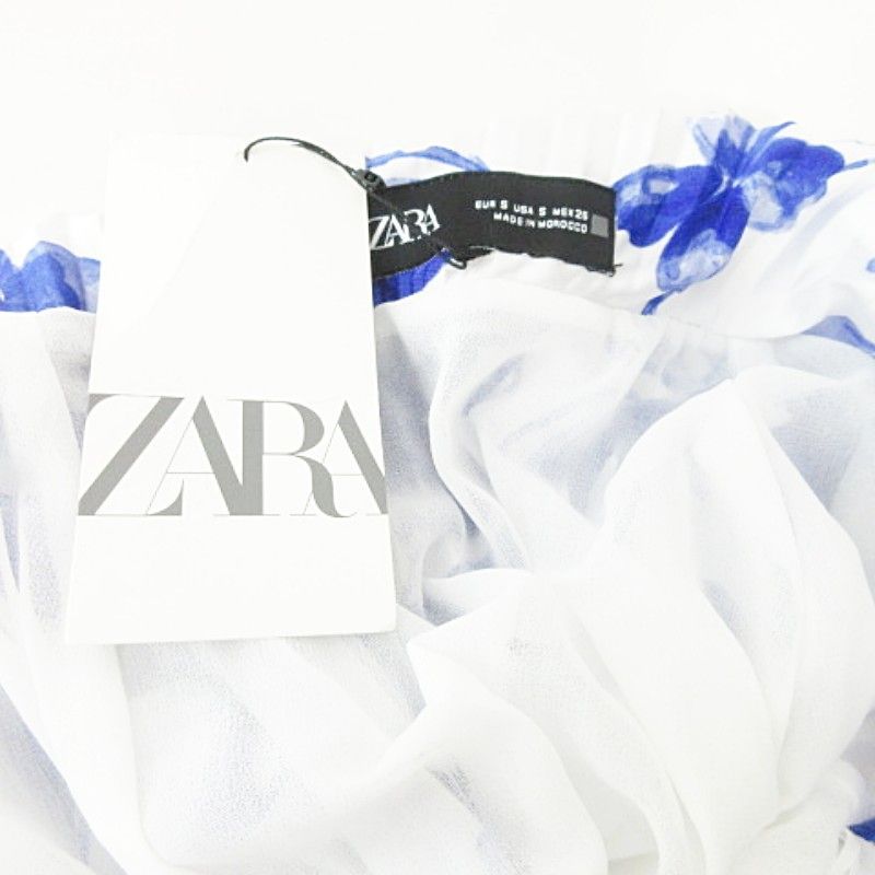 ザラ ZARA 美品 タグ付 プリーツ 花柄 スカート ゴムウエスト Sサイズ 白 ホワイト 青 ブルー