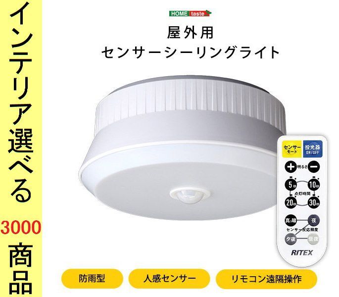 ライト 屋外シーリングライト 直径17.5×8cm プラスチック RITEX 人感センサー付き 電池タイプ 円形 リモコン付き ホワイト色 YHSH17ML07
