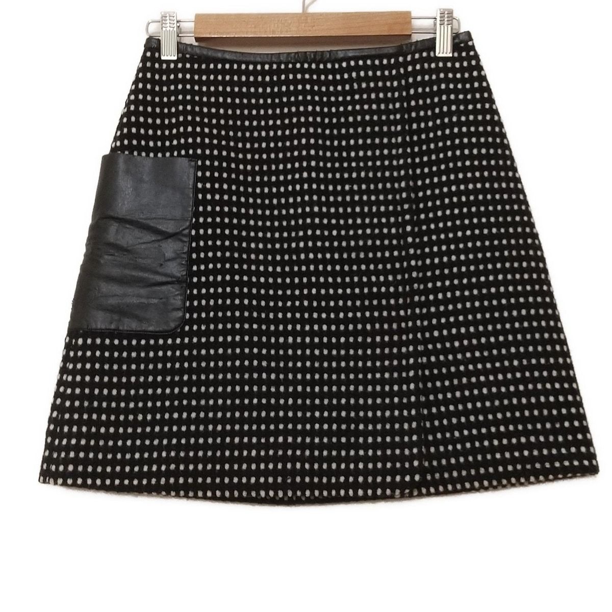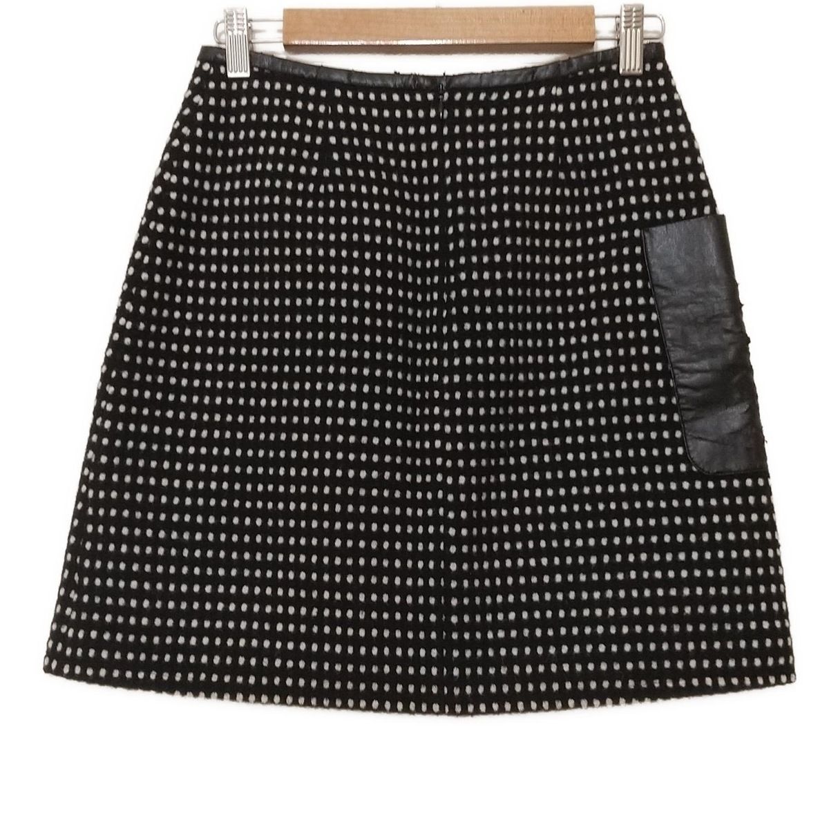 LesCopains(レコパン) スカート サイズ38 M レディース - 黒×白 ひざ丈/ドット柄/Blue les copains リネン、リネン