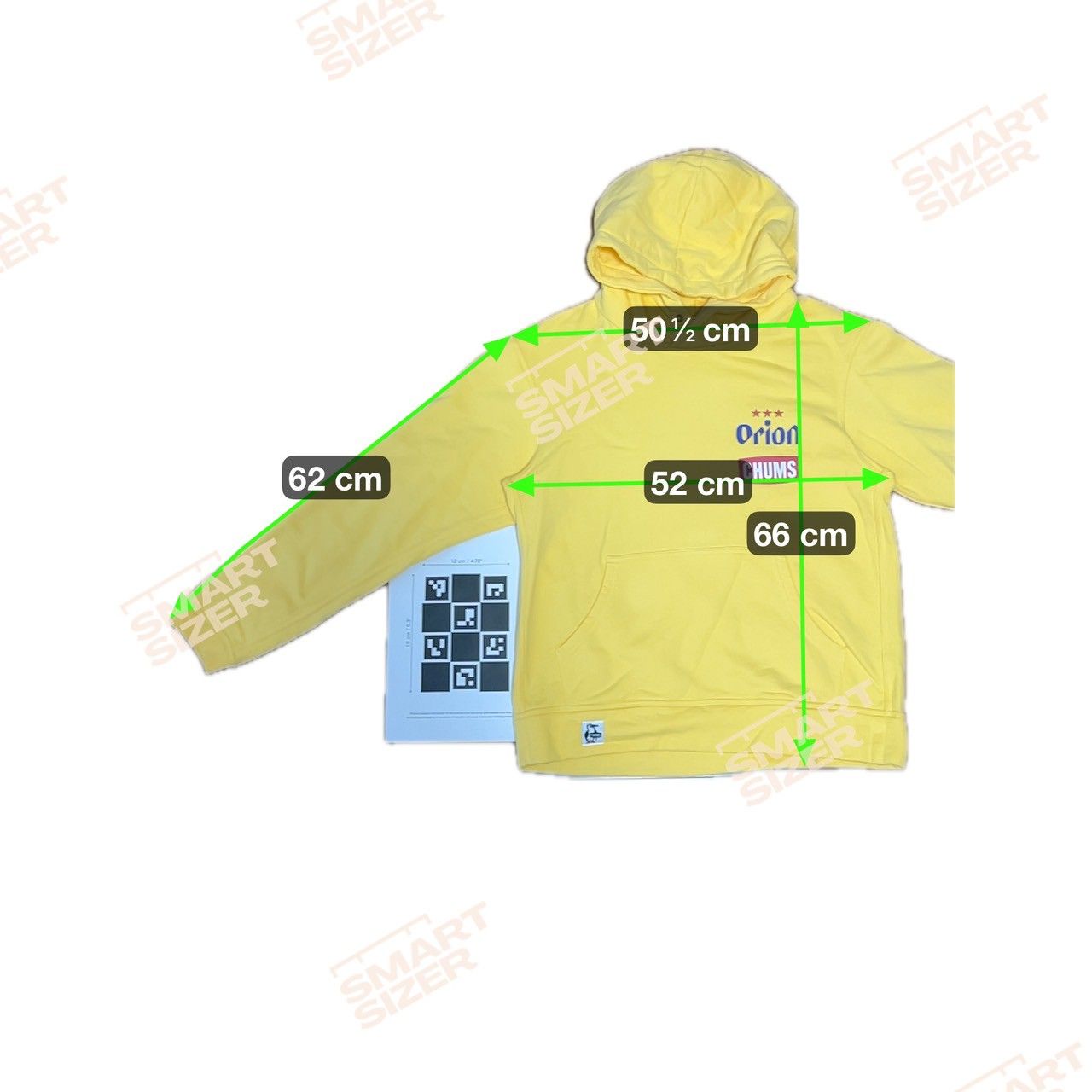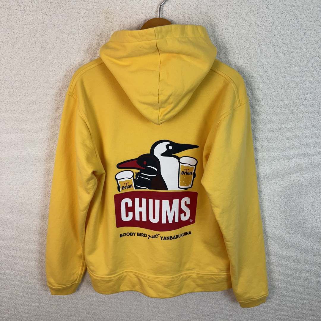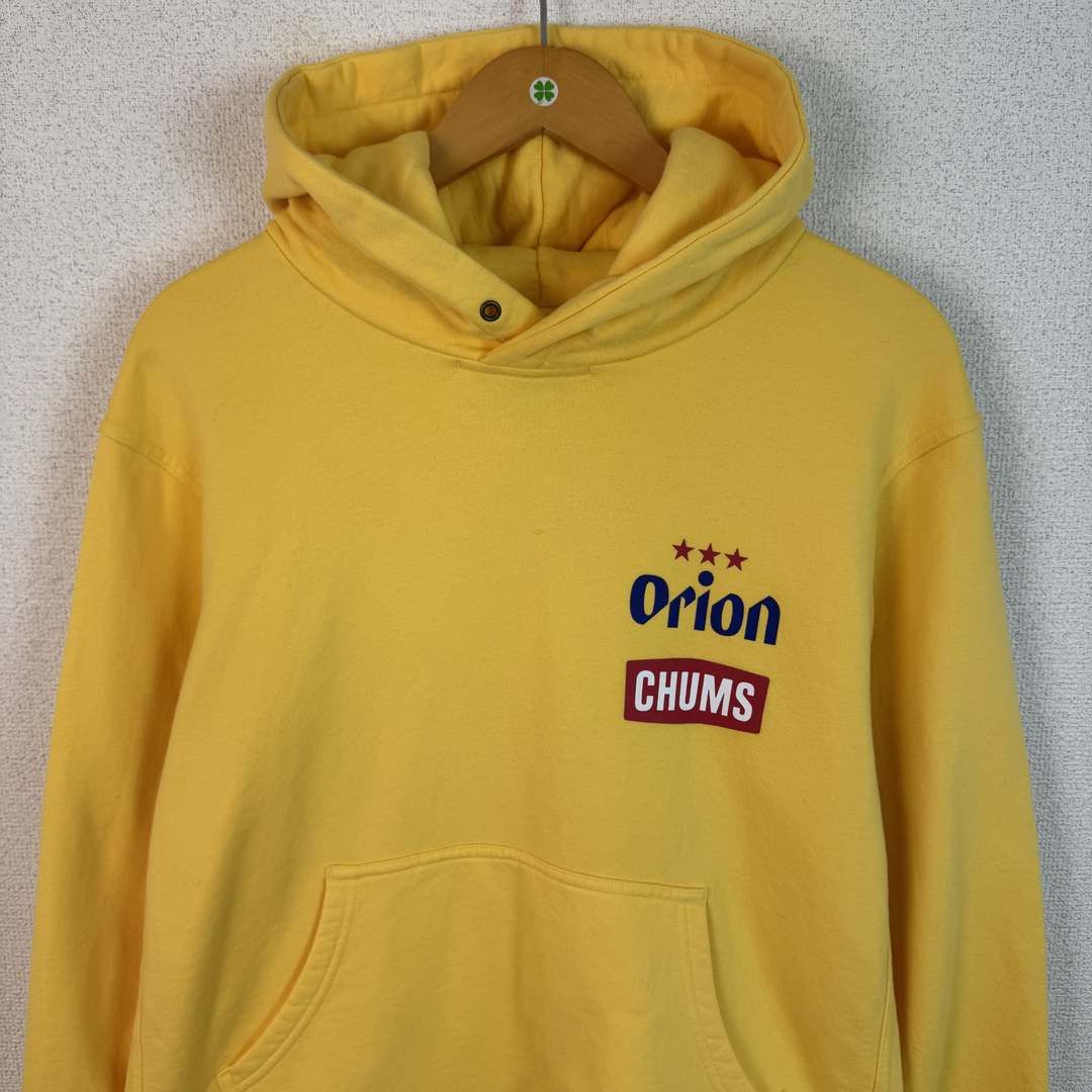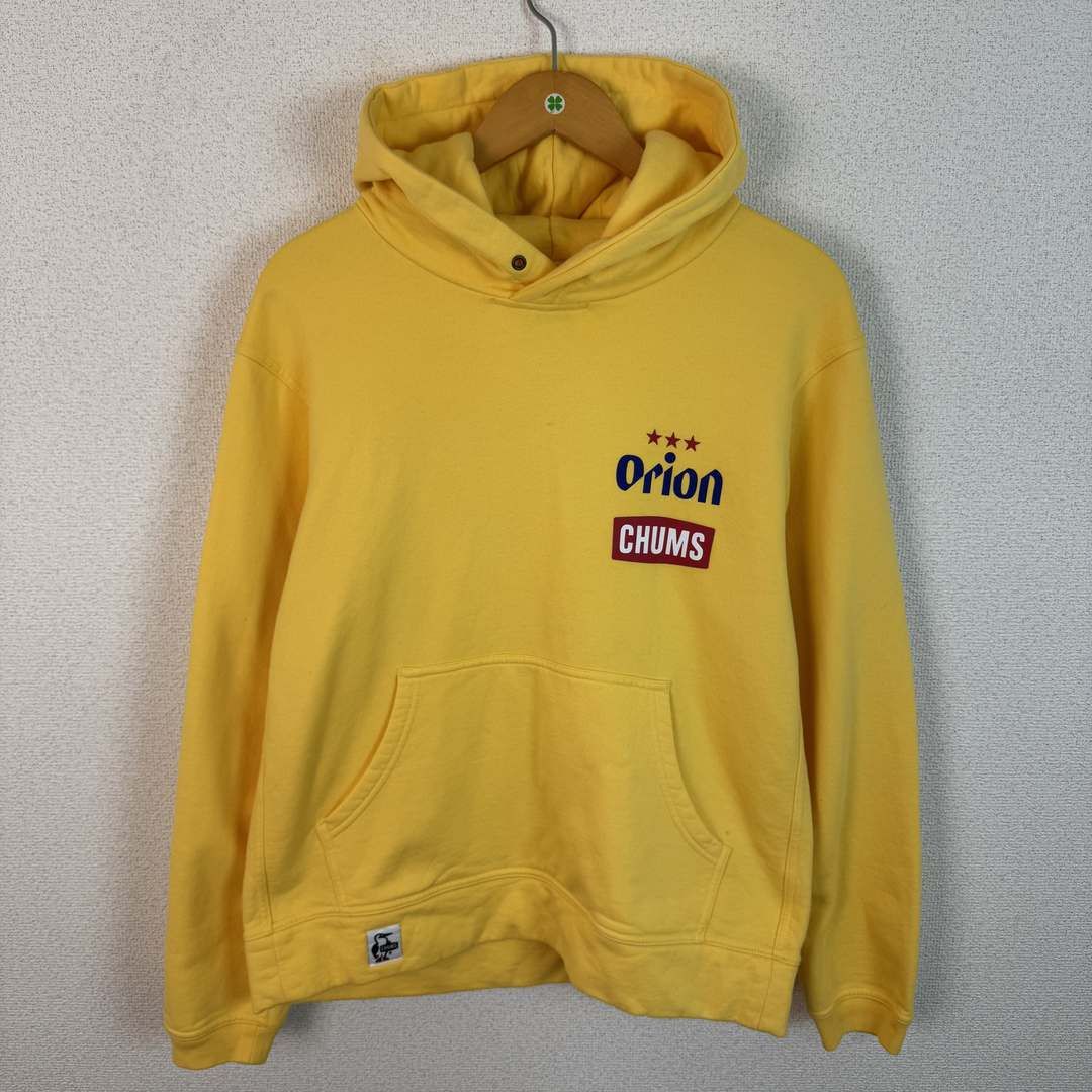 CHUMS チャムス Orion Beer オリオンビール コラボ スウェットパーカー フーディー 長袖 プルオーバー バックプリント イエロー 黄色 Mサイズ メンズ 古着 ストリート スポーツMIX フード付き カンガルーポケット 春服 秋服 冬服