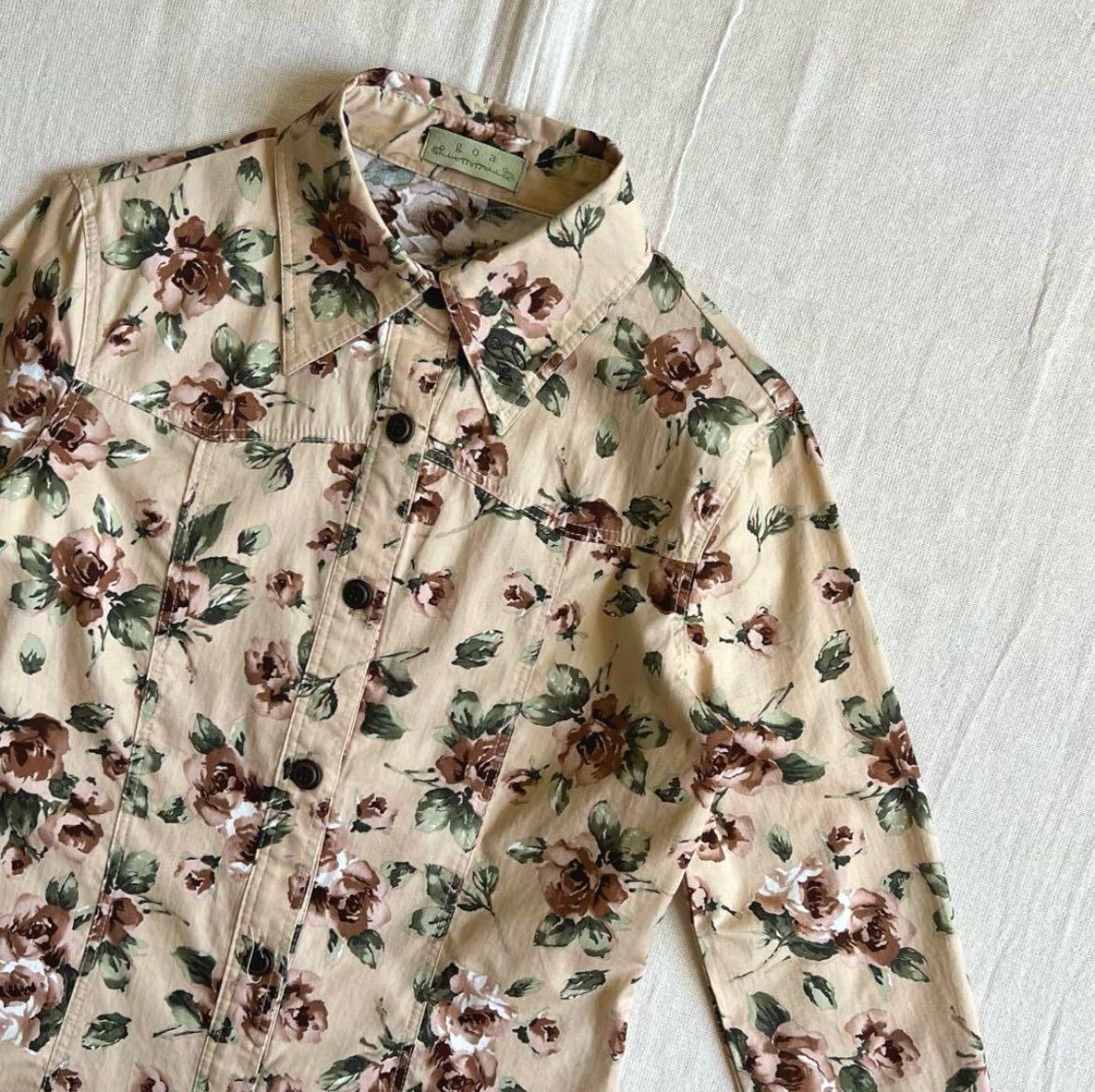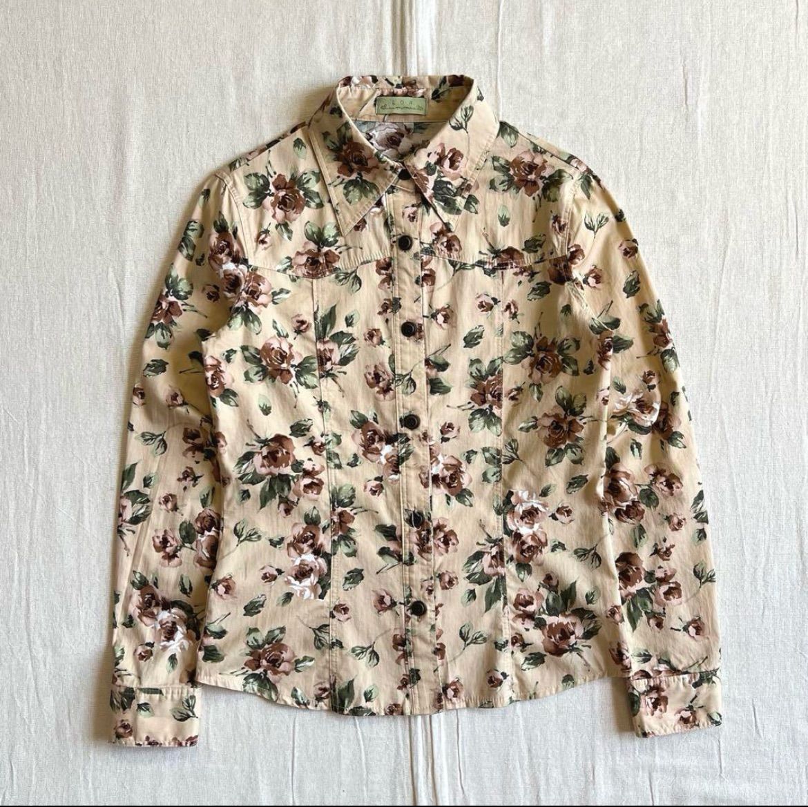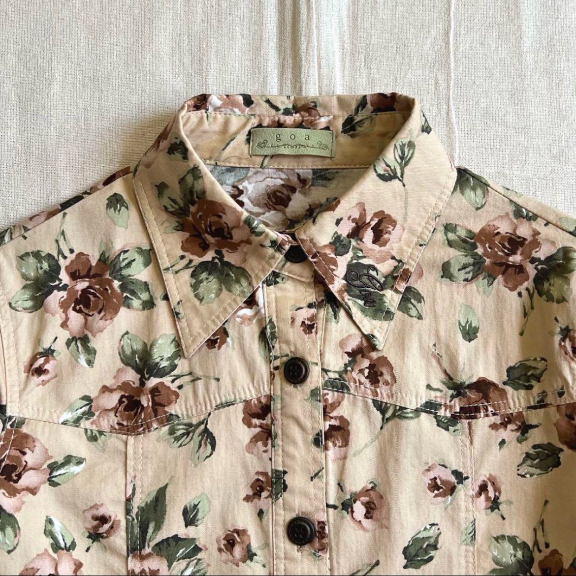 00s archive goa ゴア 薔薇 花 総柄切り替えブラウス ロゴタグ Y2K 平成ギャル