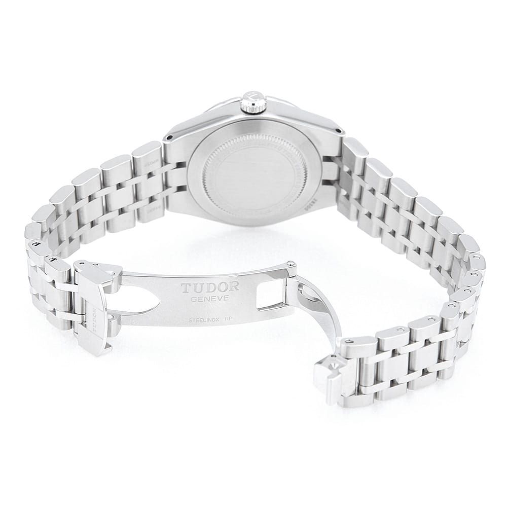 ■モデル情報:2020年にチューダーのラインナップに加わった新しいコレクション\"ロイヤル\"。ケース一体型ラグを採用したデザインは、ラグジュアリースポーツウォッチを彷彿とさせ、手に取ればすぐに分かる価格以上の高級感を演出します。28mmサイズの本モデルは、女性の手首にぴったりフィットするジャストサイズ。スポーティーでありながら上品さも兼ね備えた、日常使いに最適な1本です。