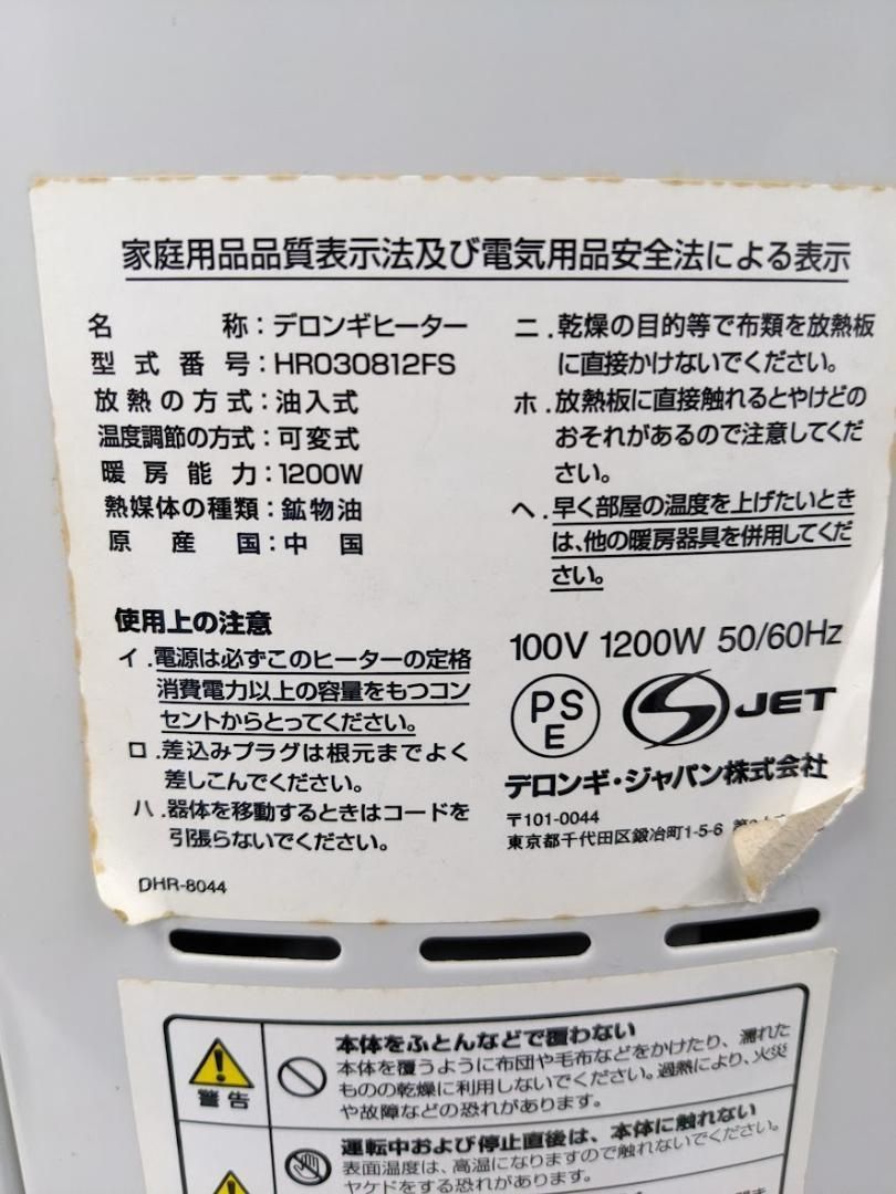 De'Longhi デロンギ HR030812FS オイルヒーター