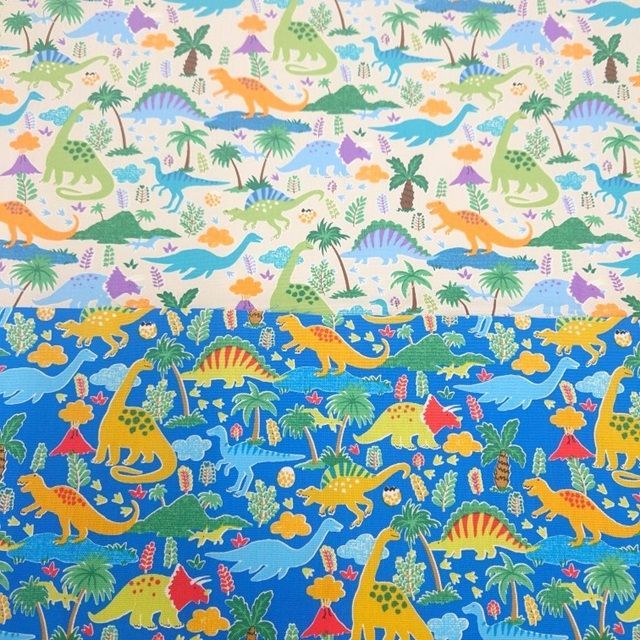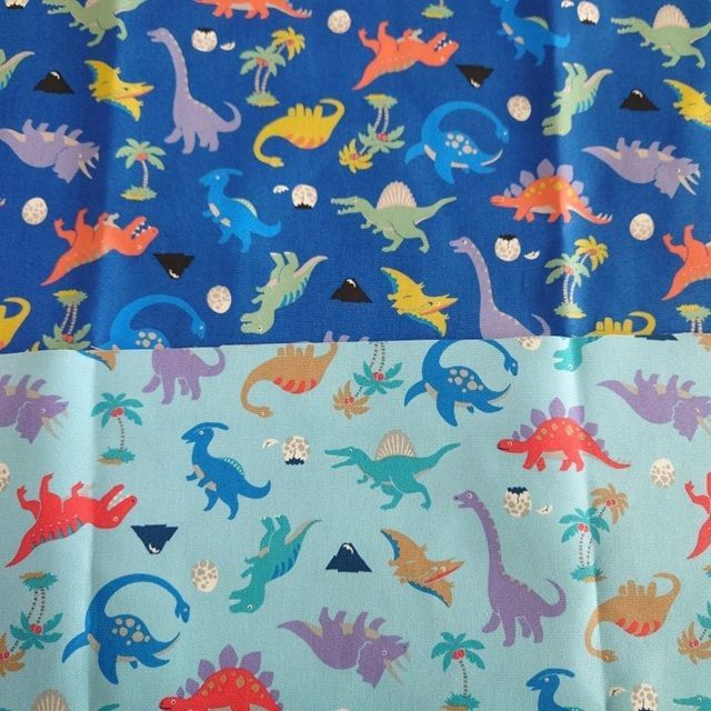 コットンプリント コットンダンガリー ブルー・グリーン系 乗り物 恐竜 ロボット 迷彩 生地 布地 10枚セット(110㎝巾 × 計3m)