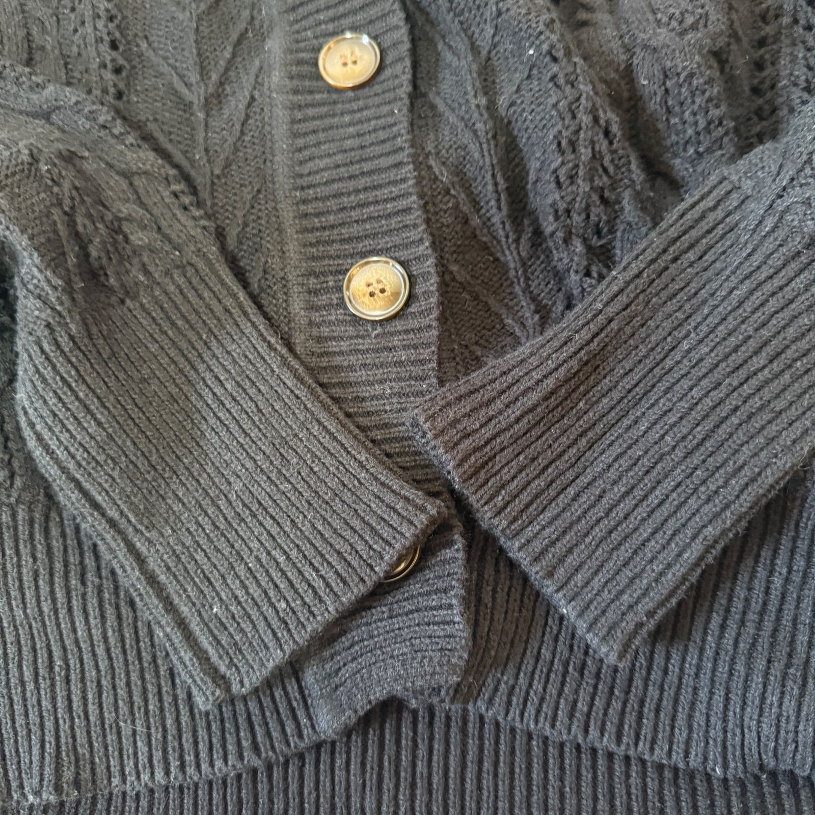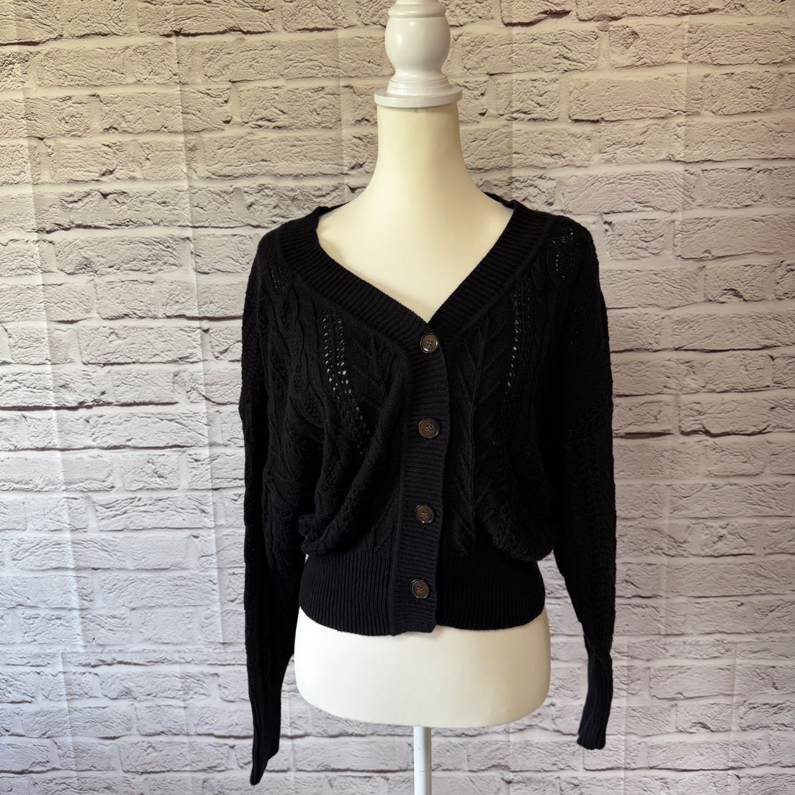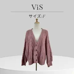 【VIS】ヴィス 透かし編み カーディガン ショート丈 ケーブルニット サイズF R-64