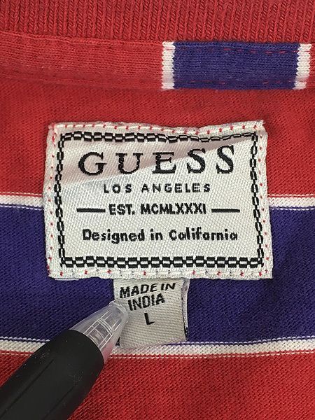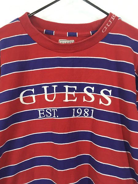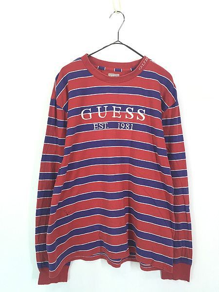 古着 GUESS 刺しゅう ボーダー長袖 Tシャツ ロンT L 古着
