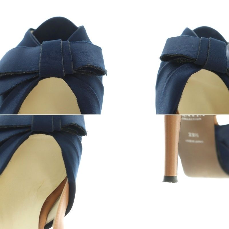 ランバン LANVIN コレクション COLLECTION パンプス オープントゥ ピンヒール リボン バイカラー 23.5cm 紺 ベージュ /MI ■OS