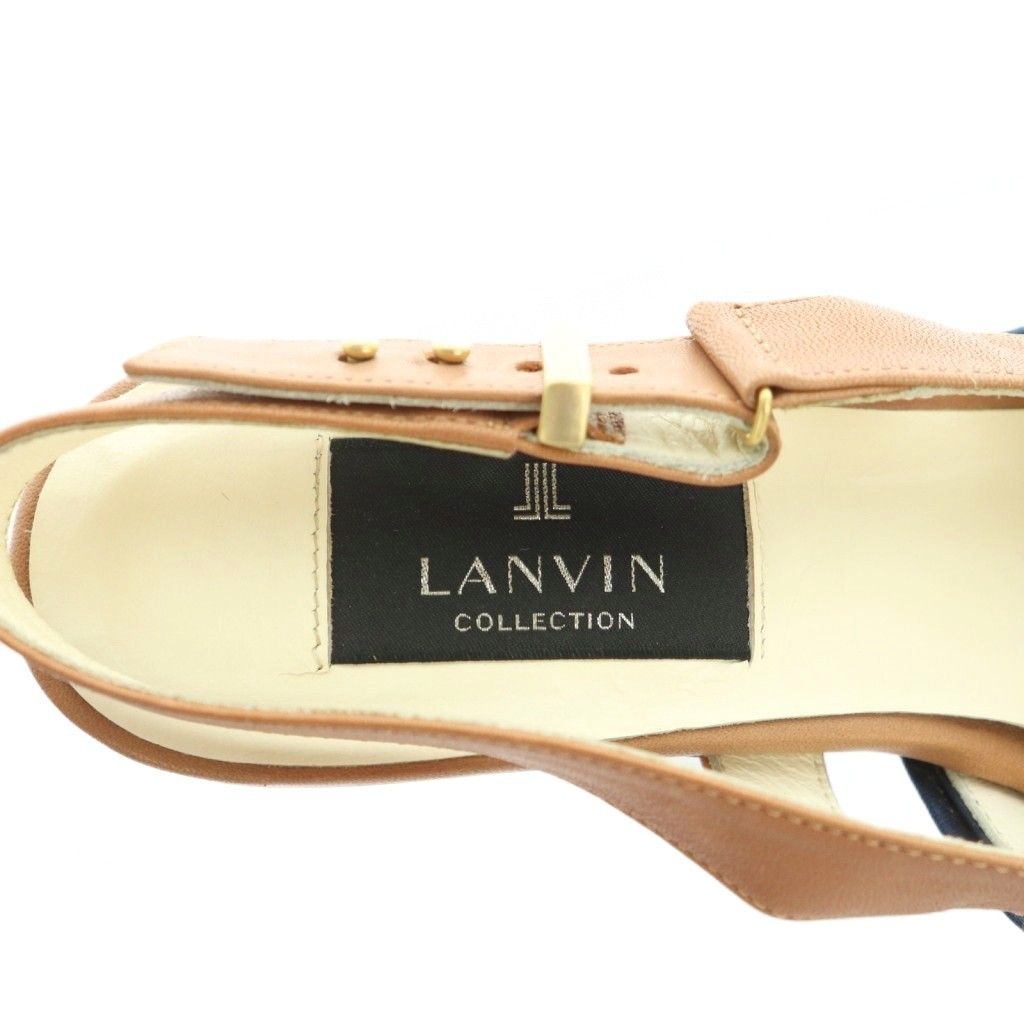 【商品名】ランバン LANVIN コレクション COLLECTION パンプス オープントゥ ピンヒール リボン バイカラー 23.5cm 紺 ベージュ /MI ■OS