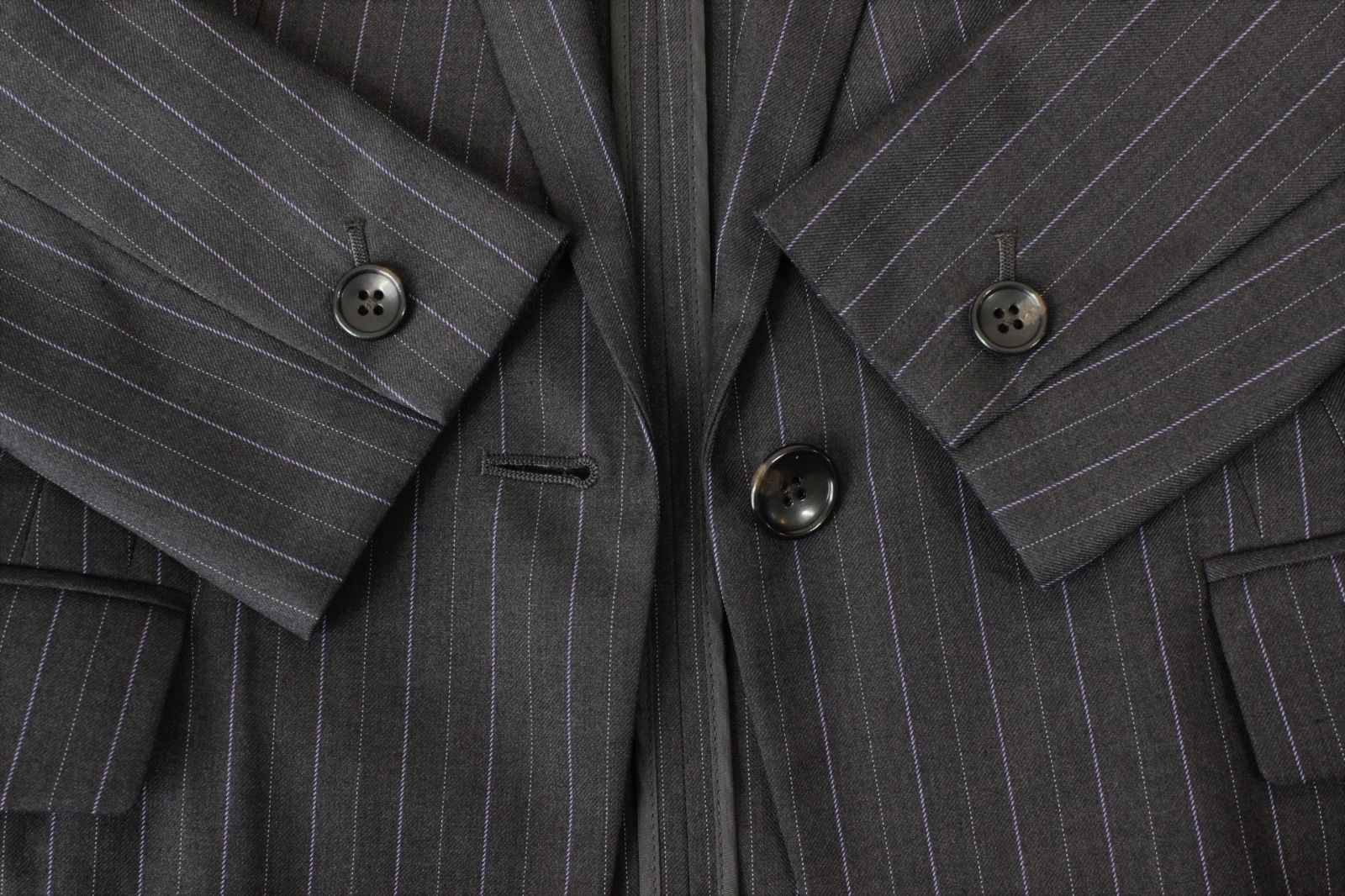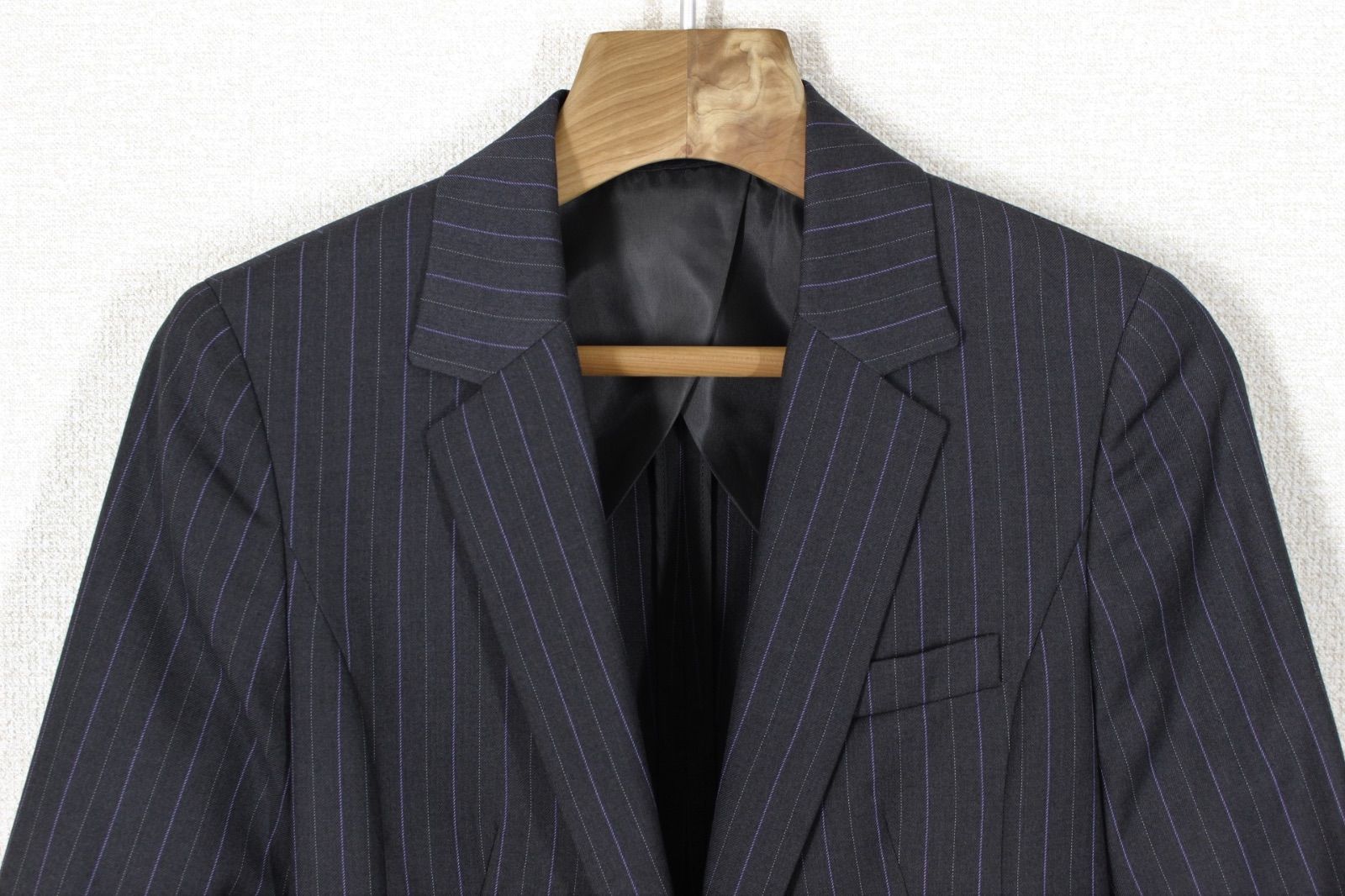 ジャケットは,背抜き仕立て・ノーベント・袖ボタン本開き・袖額縁仕立て。