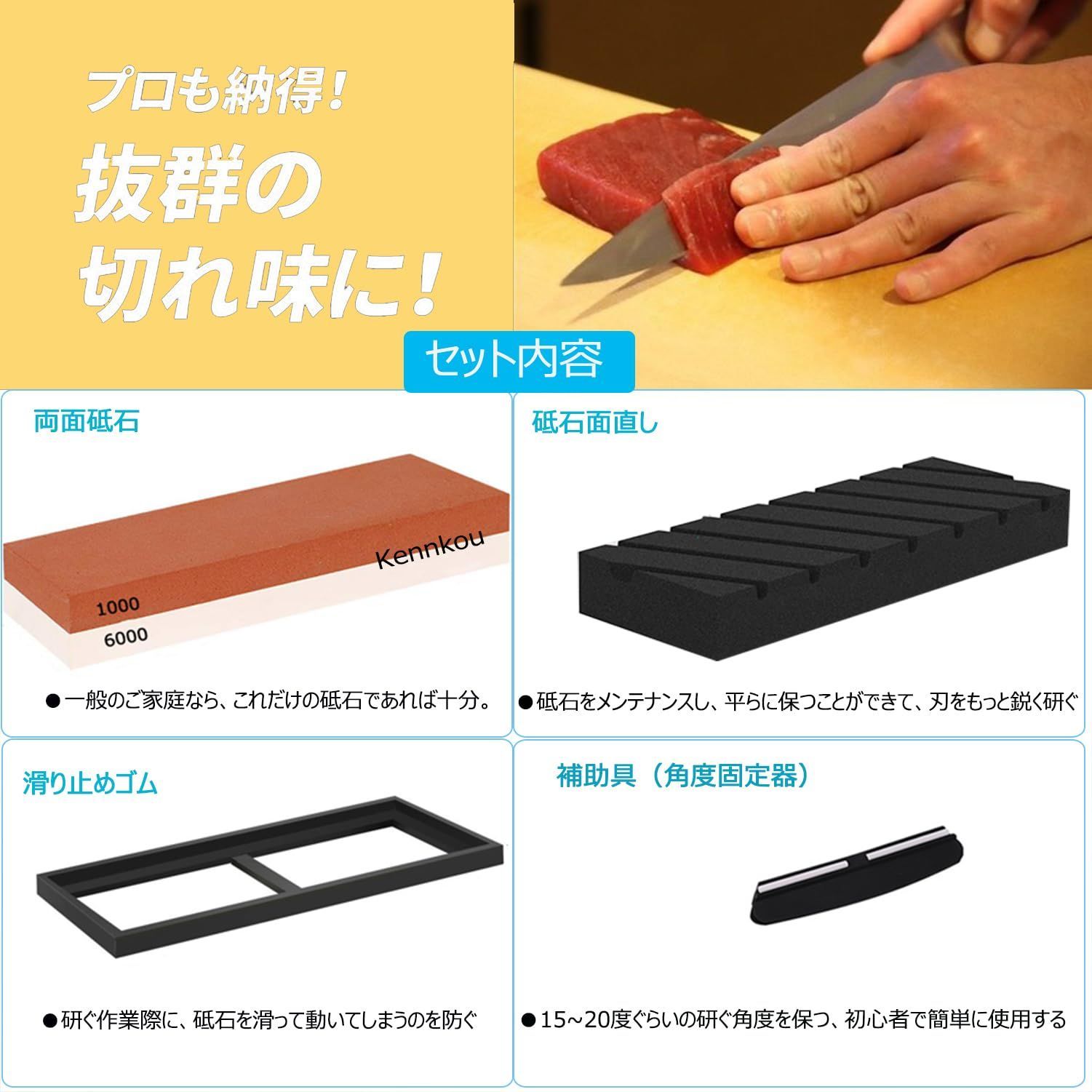 【お買い得な砥石セット】:この砥石セットは1000 6000両面砥石と砥石面直しセットで、角度固定用刀補助具付きので、別々購入するよりお買い得です。