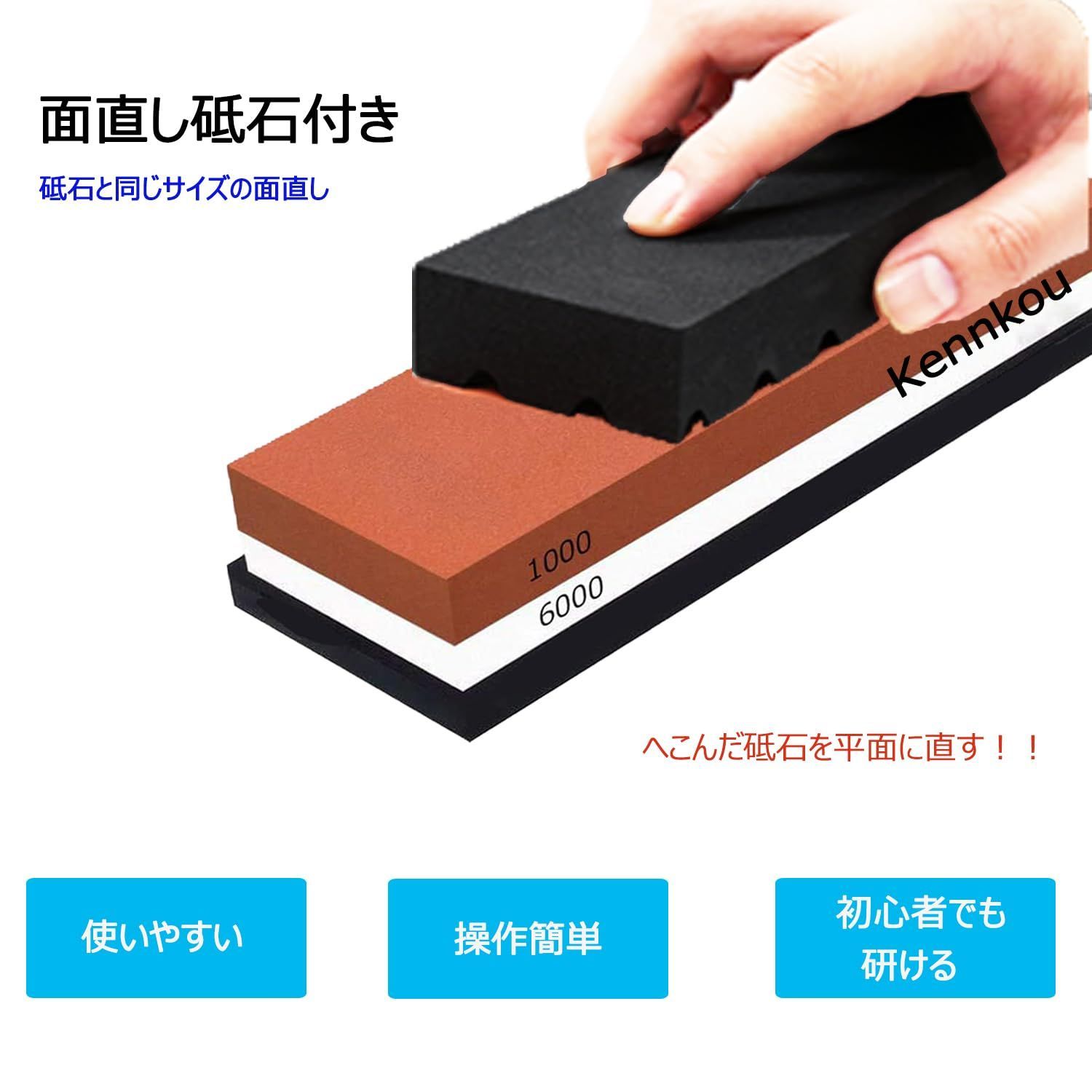 包丁研ぎ 面直し石 中砥石/仕上砥石 家庭用 研ぎ石 角度固定ホルダー 両面 日本語説明書付き 1000/6000 砥石 赤/黒 Kennkou