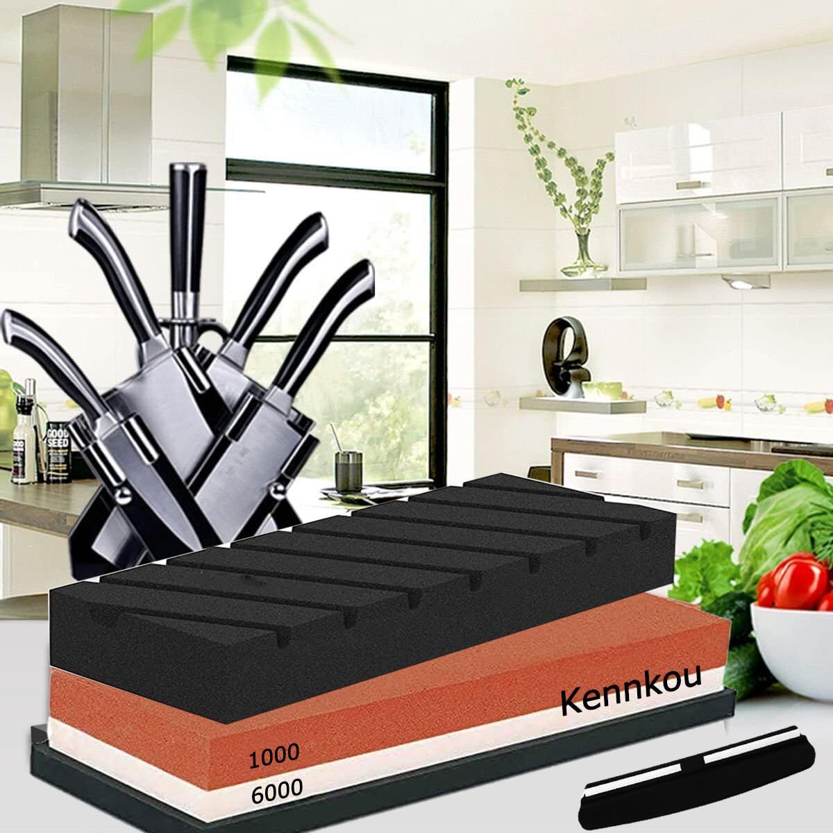 Kennkou 砥石 1000/6000 両面 研ぎ石 家庭用 面直し石 包丁研ぎ 中砥石/仕上砥石 角度固定ホルダー 日本語説明書付き 赤/黒