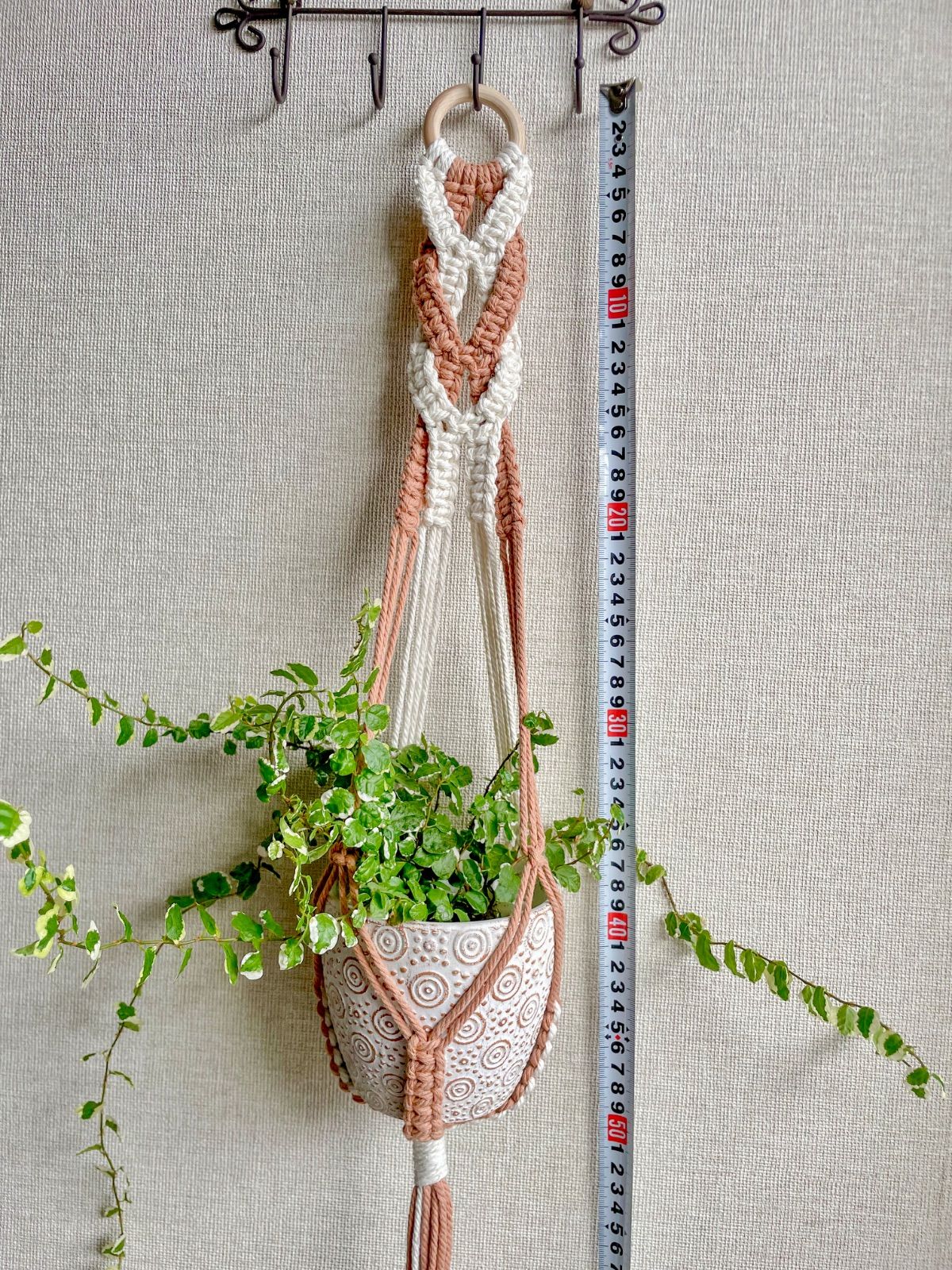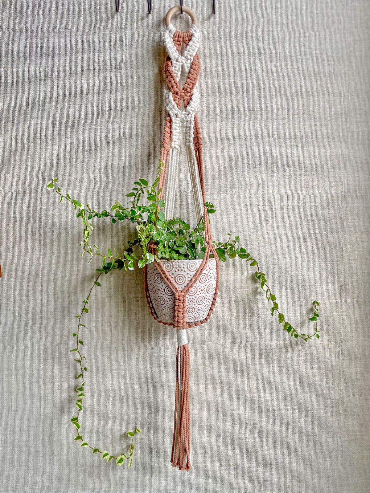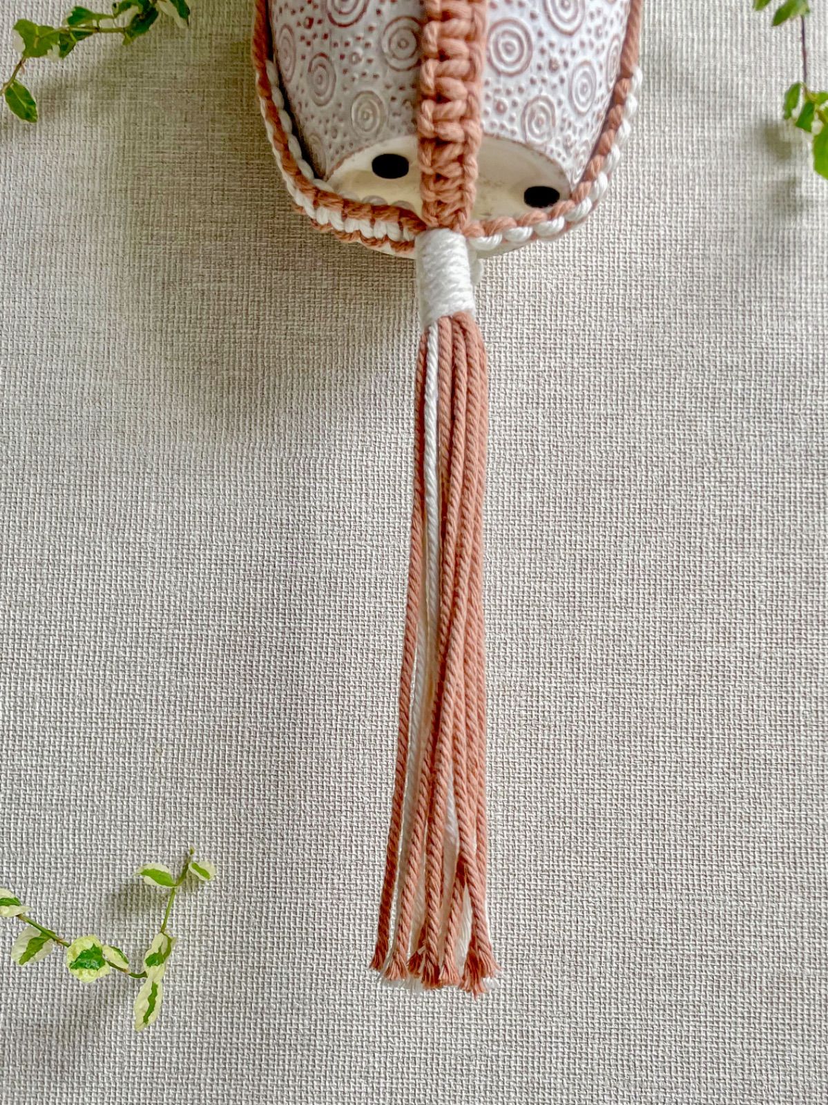 【送料無料】マクラメ プラントハンガー(アイボリー×ライトブラウン)