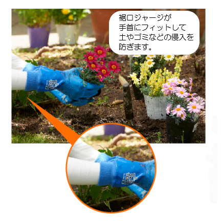 ● ジャージが手首にフィットし、裾部分からの土やゴミなどの侵入を防ぎます。