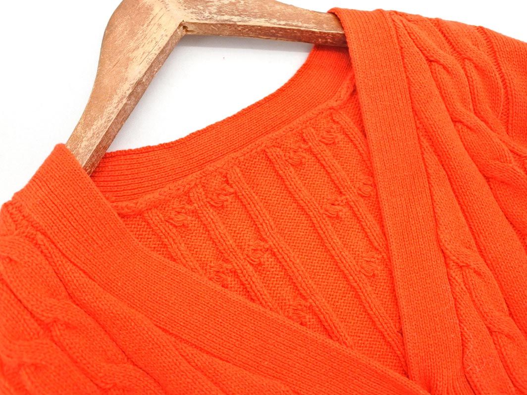 VIS ビス Vネック ケーブル編み カーディガン sizeF/オレンジ ◇■ レディース