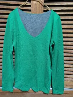 Vネックデザインが特徴で、カジュアルながらもスッキリと洗練された印象