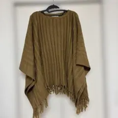 ポイント : 透け感あり Vネック フリンジ ナチュラル ポンチョ