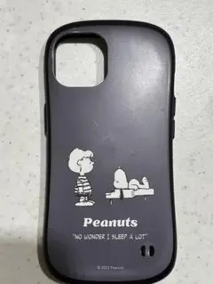 スヌーピーのイラストが特徴的なクリーム色の合成皮革ケース、カードポケット付きで実用的。
