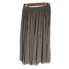 きなりのような色合いの優しい麻混素材のスカートにネイビーのチェック柄が入っています。