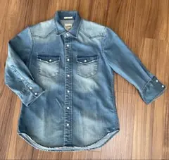 ナノユニバース グレー デニムジャケット ダメージ加工