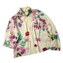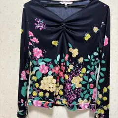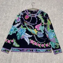 【匿名配送】LEONARD 花柄総柄プルオーバーカットソー 長袖 ウール×シルク