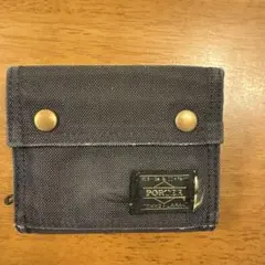 ナイロン製の黒い二つ折り財布、カードポケットと透明ポケット付き。