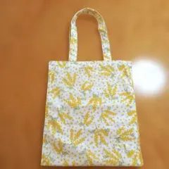 ミモザ柄トートバック 両面ミモザ柄 隠しマチつき momen-t綿麻生地