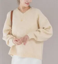 ライトブルーのクルーネックニット、長袖デザインで快適な着心地。