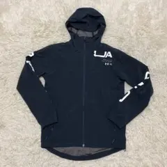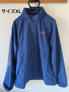 ネイビーのUnder Armourゴルフ用ジャケット、ハーフジップデザイン、ポケット付き。