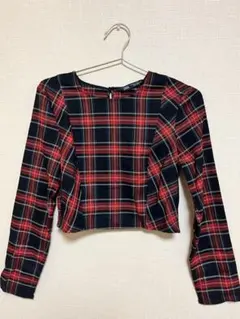 ライトブルーのデニム風長袖シャツ、大きな襟付きデザイン。