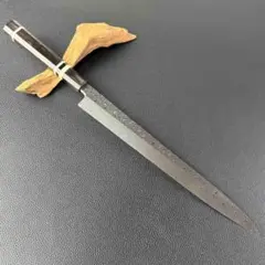 9658 新品 ダマスカス 先丸包丁 尺 渦潮紋 105層 黒檀黒水牛角八角柄