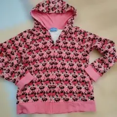 ミニーマウスの可愛いプリントが施されたピンクのパーカーです。