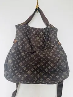 russet ラシット 総柄ナイロン×本革 レザー ショルダーバッグ カーキ×茶